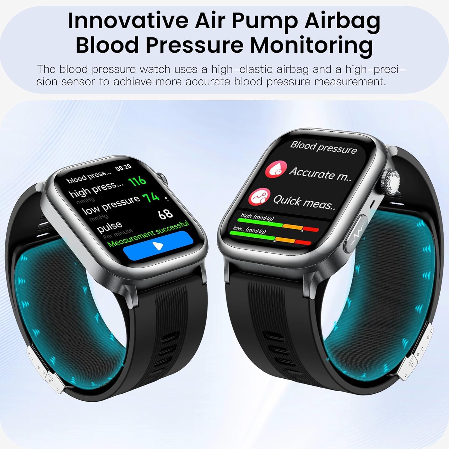 Blood Pressure Smart Watch with Air Pump Air Bag, Voice Broadcast, Data Sharing, 2.06″ AMOLED Fitness Tracker, 24/7 Heart Rate/Blood Oxygen/Sleep,SOS Botton,Answer/Make Call.