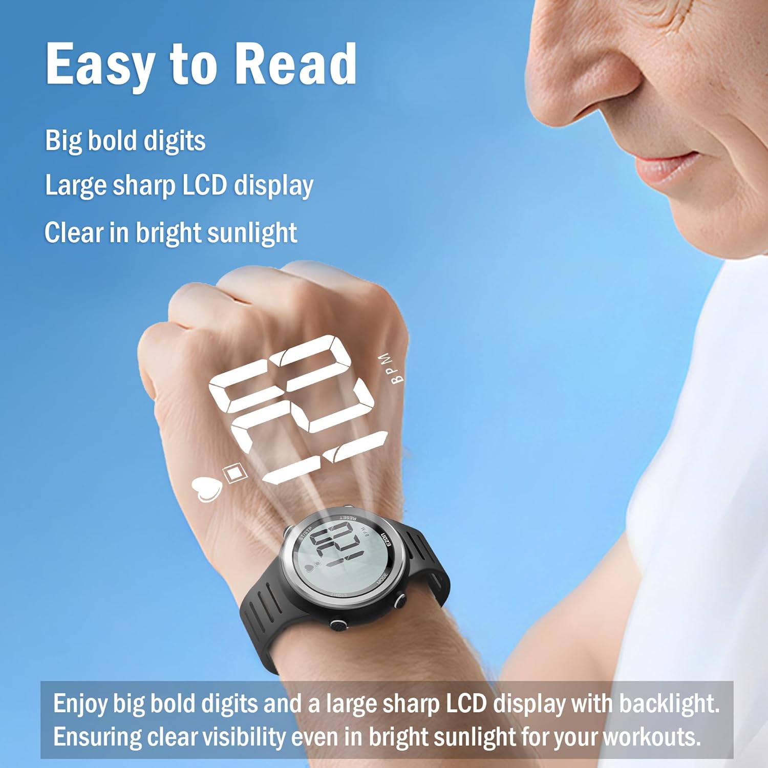 🔥 EASY READ & EASY USE: A large and clear display with big numbers make you read easy. Includes full watch functions with Stopwatch. Comfortable fabric strap with transmitter and coded heart rate transmission to avoid cross-talk