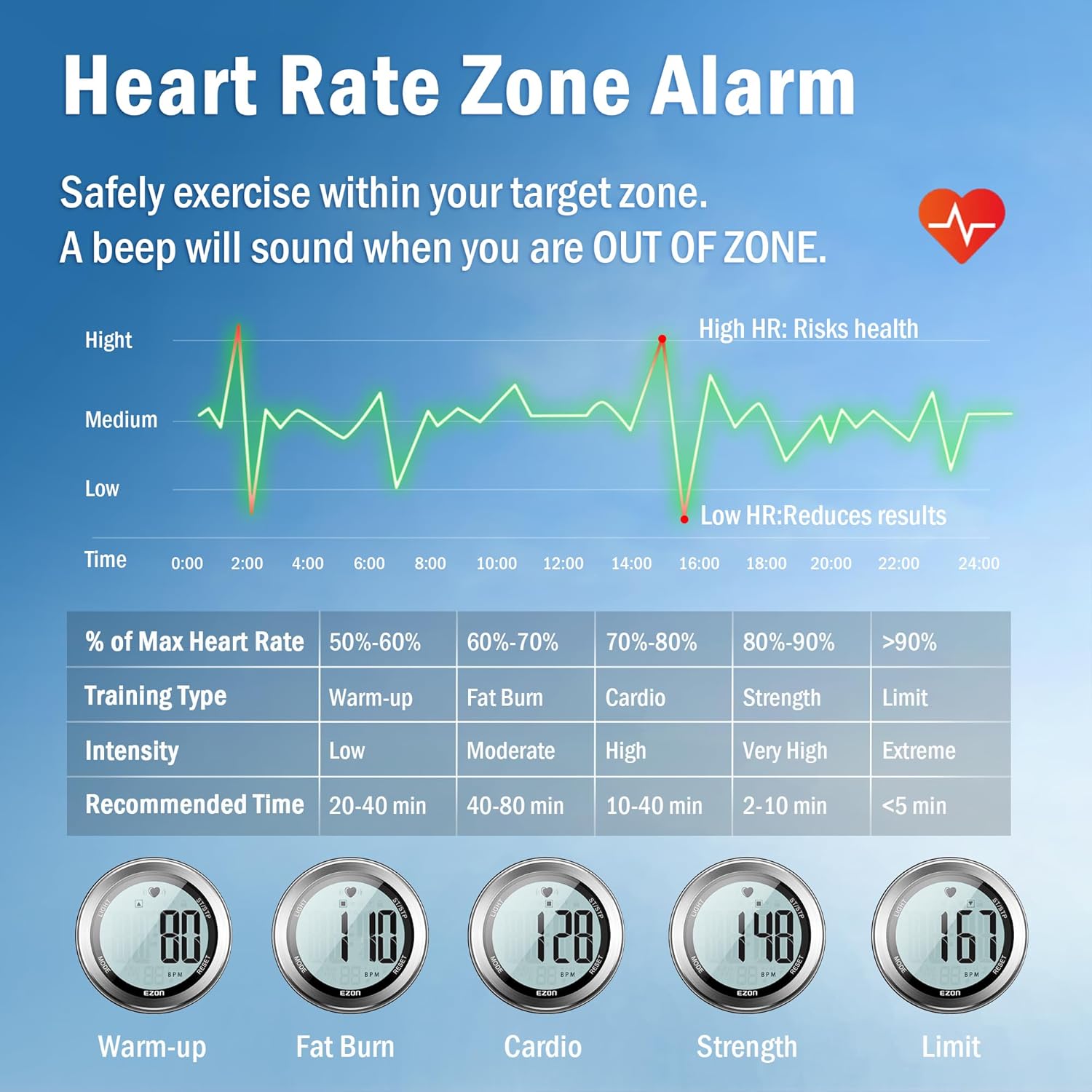 💓HEART RATE MONITOR: Continuous, accurate real-time heart rate provides clear workout guidance, and use manual heart rate target zones with audio and visual target zone alarm to find the right exercise intensity for your goals