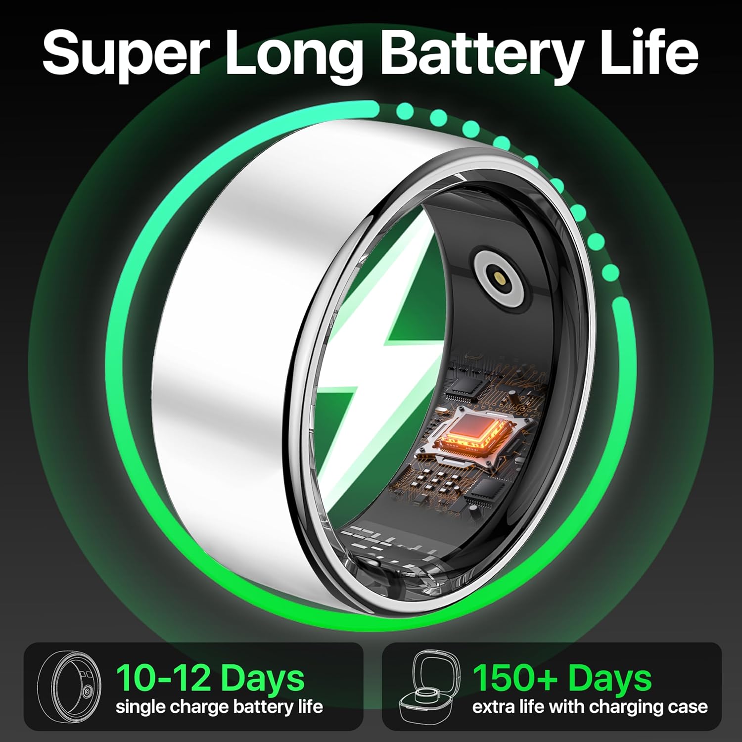 Extended Battery Life & Fast Charging: Designed for durability, this smart ring offers long battery life and rapid charging. The included charging case provides multiple full charges, ensuring uninterrupted health monitoring.