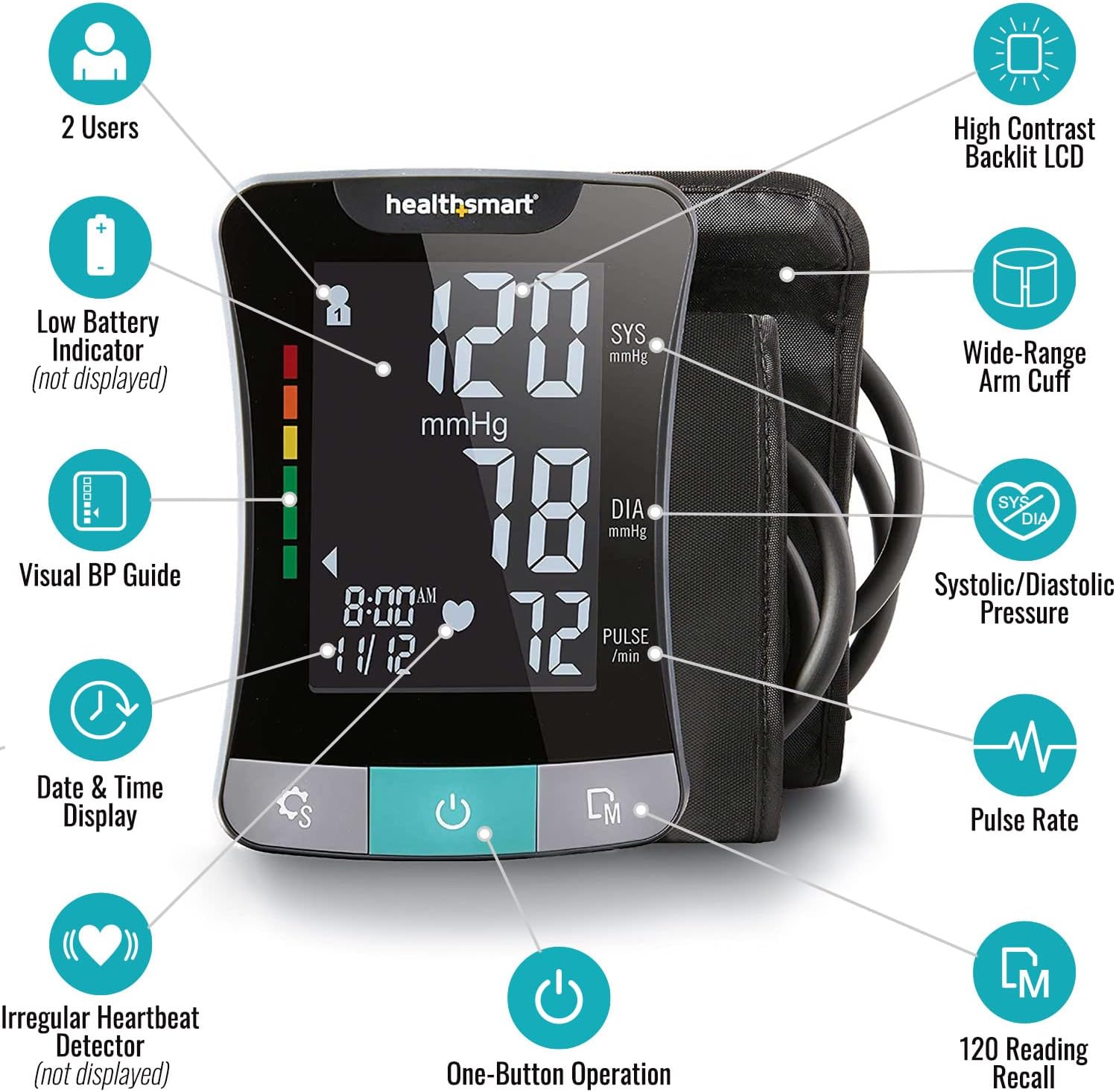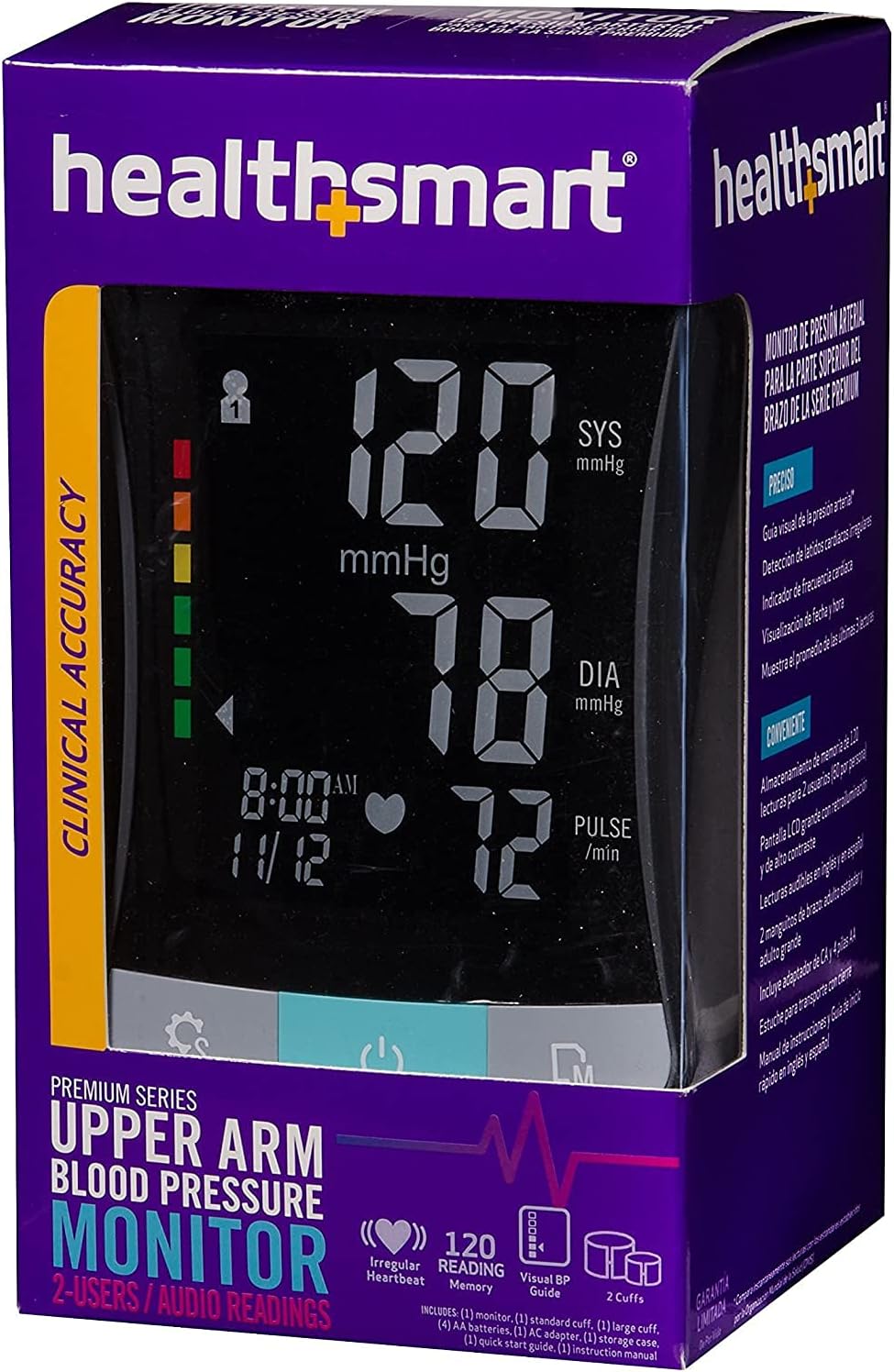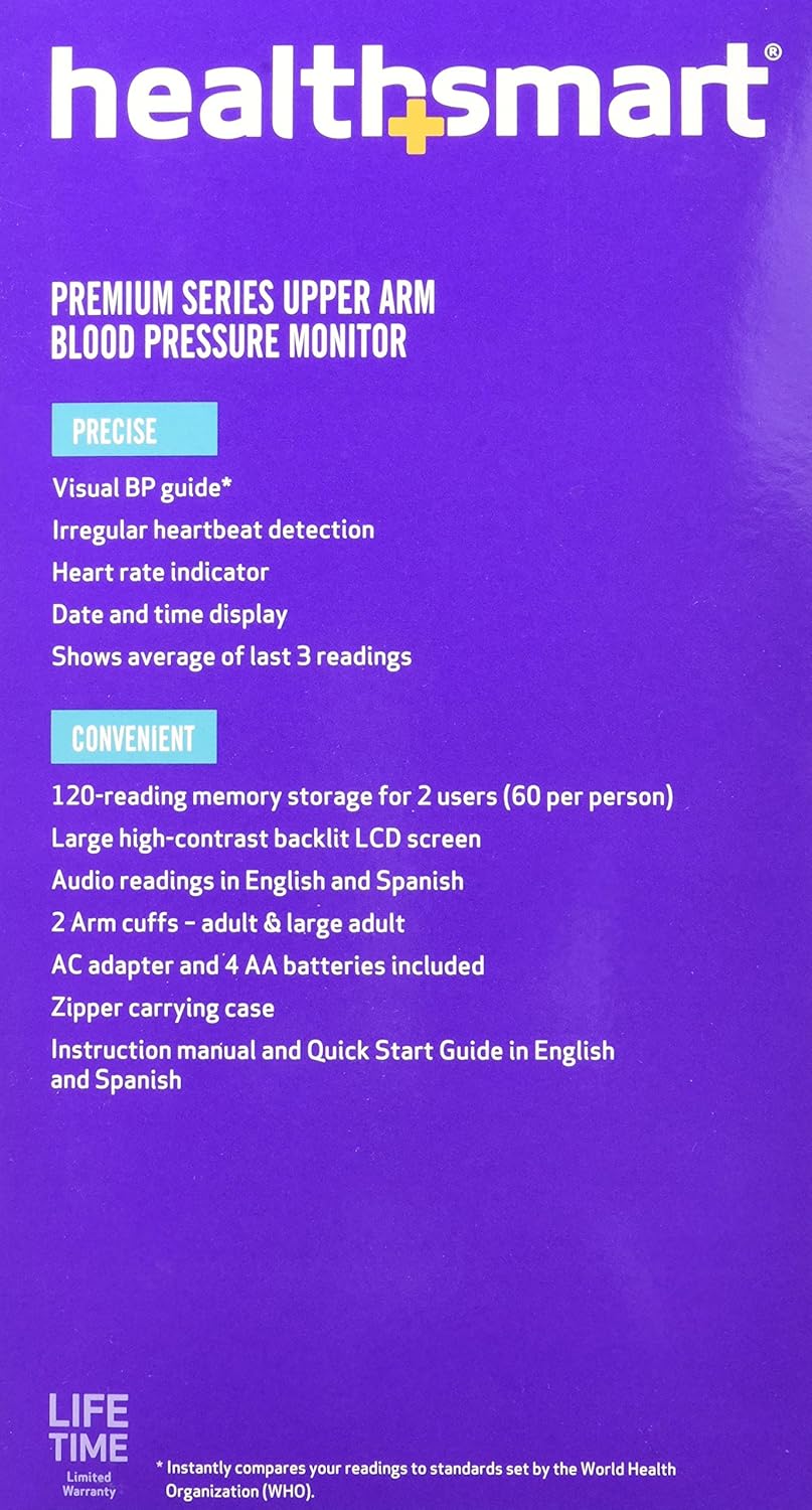 HealthSmart Digital Premium Blood Pressure Monitor with Automatic Upper Arm Cuff that Displays Blood Pressure, Pulse Rate and Irregular Heartbeat, Stores up to 120 Readings for 2 Users