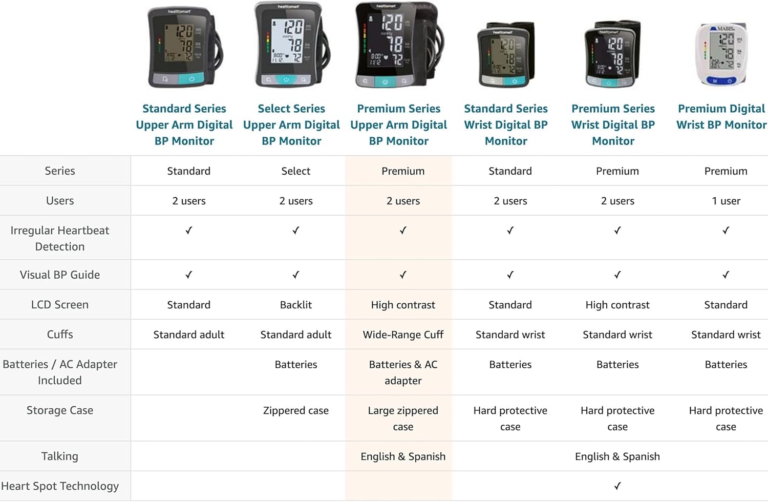 DIGITAL BLOOD PRESSURE MONITOR WITH IRREGULAR HEARTBEAT DETECTION to help identify arrhythmias or palpitations by instantly comparing measurements to internationally established standards for home blood pressure use by using the Visual BP Guide