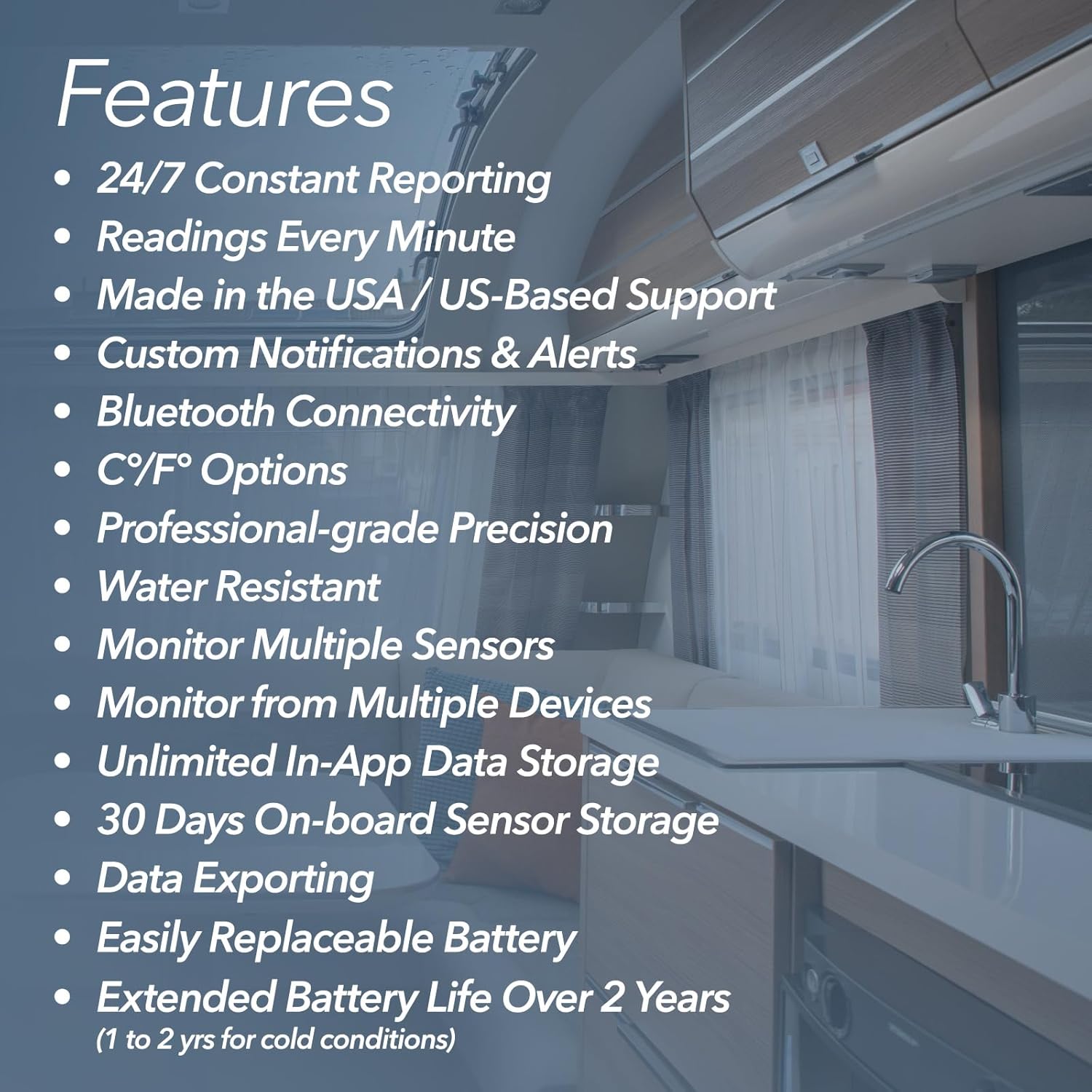 SIMPLE & RELIABLE: Sensors are manufactured with reliable hardware, a 1-2 year battery life in typical conditions, & excellent Bluetooth range. The app, available in 6 different languages, updates when in range of the sensor (within 100m, line of sight), so data is ready to view at your convenience. For access anywhere, add the SensorPush G1 WiFi Gateway (sold separately) to create an ideal WiFi temperature sensor or humidity monitoring solution for cigar humidors, greenhouses, freezers & more.