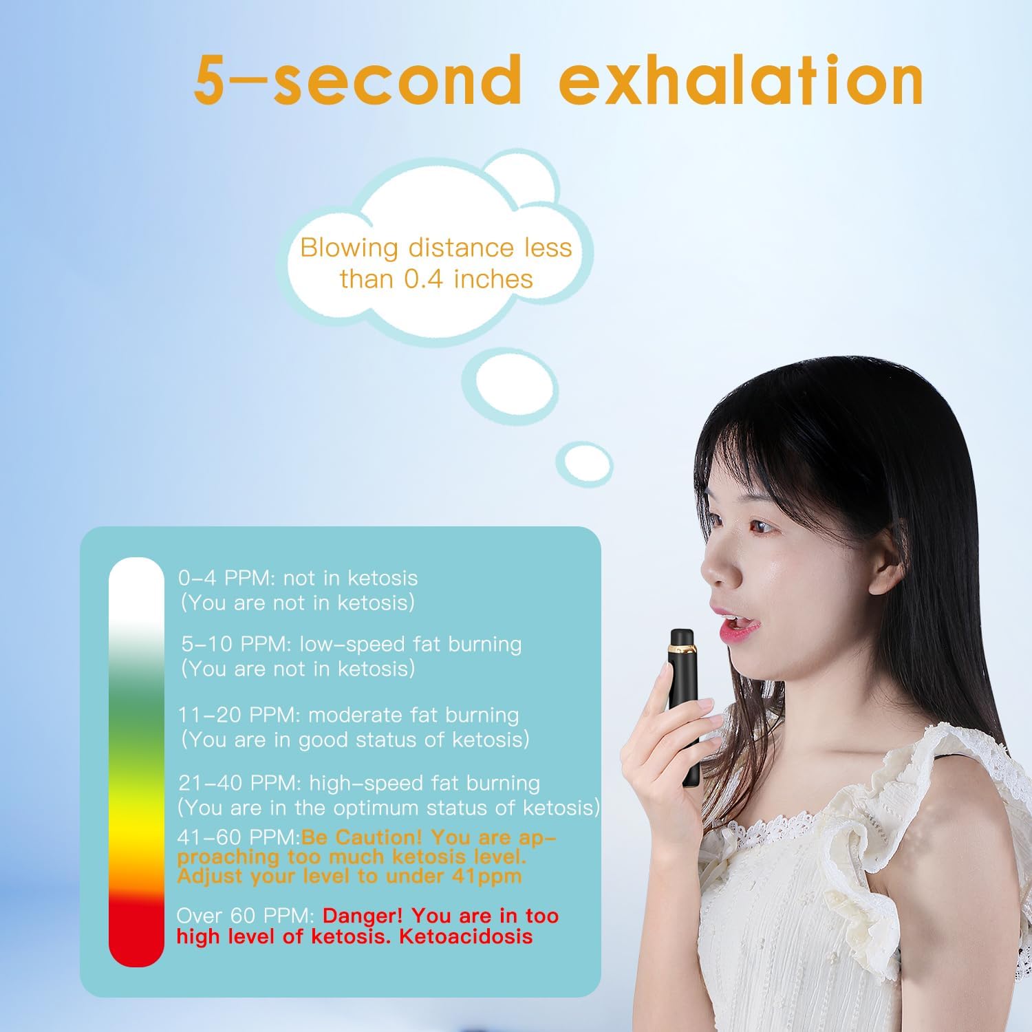 Accurate and Efficient Ketone Breath Detection: Our ketone breath analyzer is a top-qualified product in the field of ketone breath testing. Whether you search for ketone breath meter, ketone breath tester or ketosis breath tester, this device meets your needs precisely. Equipped with a 32-bit high – performance integrated chip, it can accurately calculate the fat-burning rate corresponding to the acetone content. With just 5-second blowing detection, it offers real-time and intelligent analysis, clearly showing your fat-burning state, helping you to scientifically assess the fat-burning level and make a personalized fitness plan.
