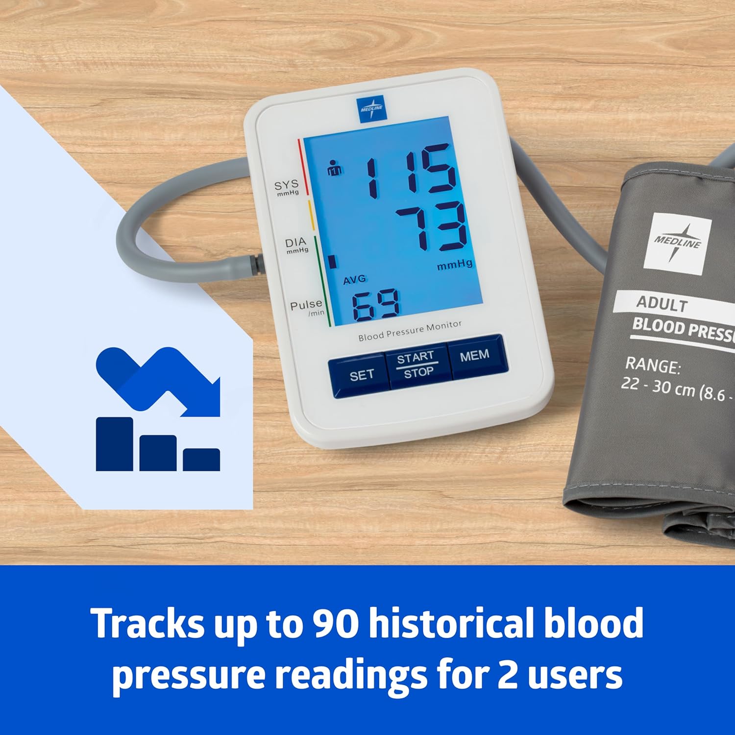 Medline digital Blood Pressure Monitor, Adult Upper Arm Cuff, Digital LCD Display, Stores Up To 90 Readings, Batteries includedes
