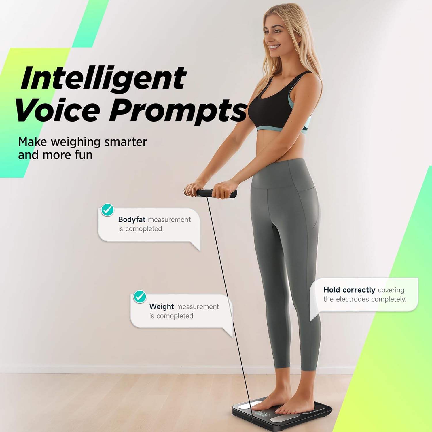 Making Weighing Easier: Intelligent voice prompts are specially incorporated so that you don’t need to stare at the screen of the smart scale to confirm whether the measurement is completed. It also acts as a reminder for correct posture. This transforms the weighing process into a more engaging and lively experience