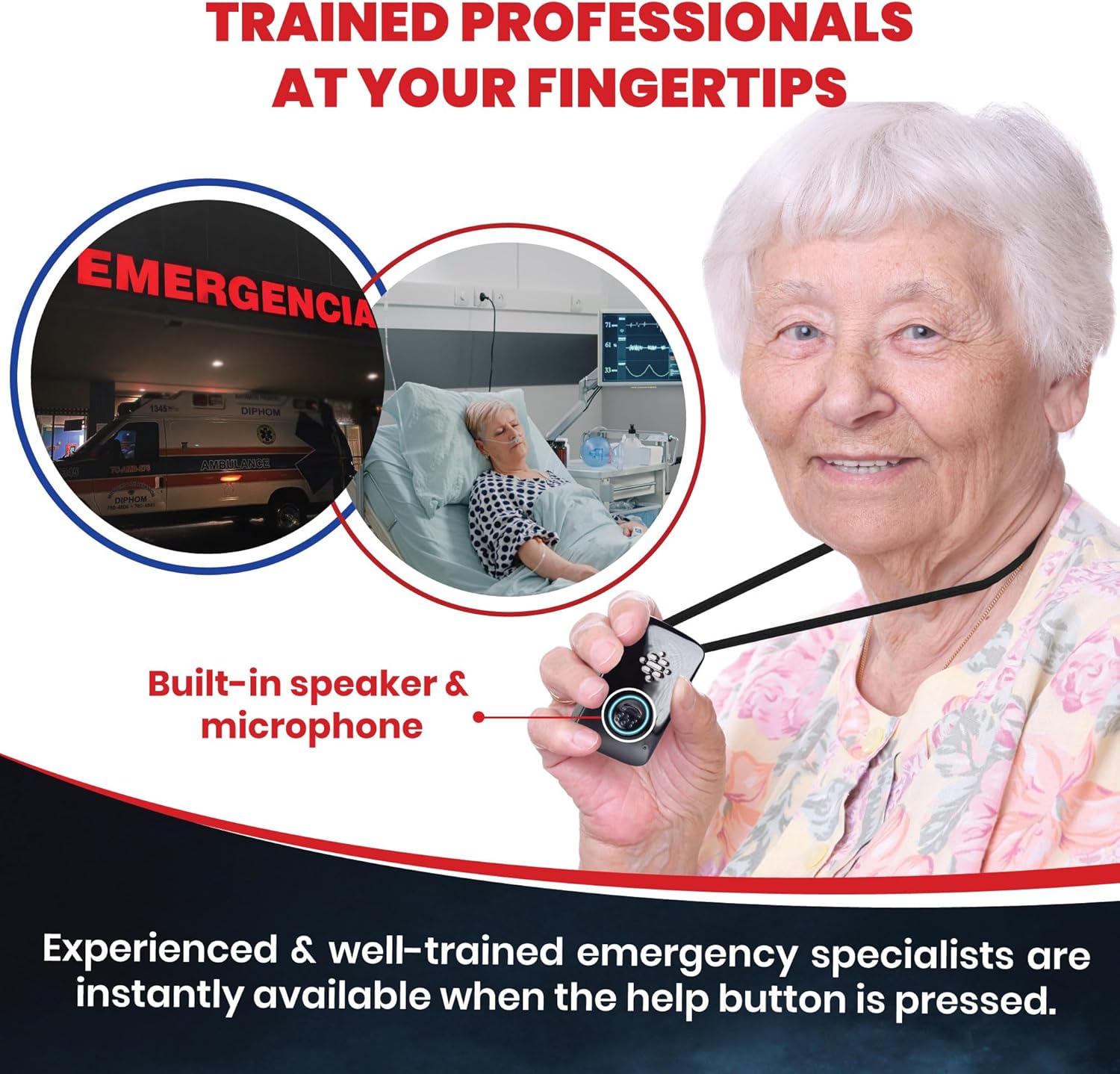 INSTANT HELP AT THE PUSH OF A BUTTON: Help is just one button press away. Our certified healthcare professionals are available 24/7 to respond to emergencies, dispatch medical assistance, and relay important messages to friends or family members.