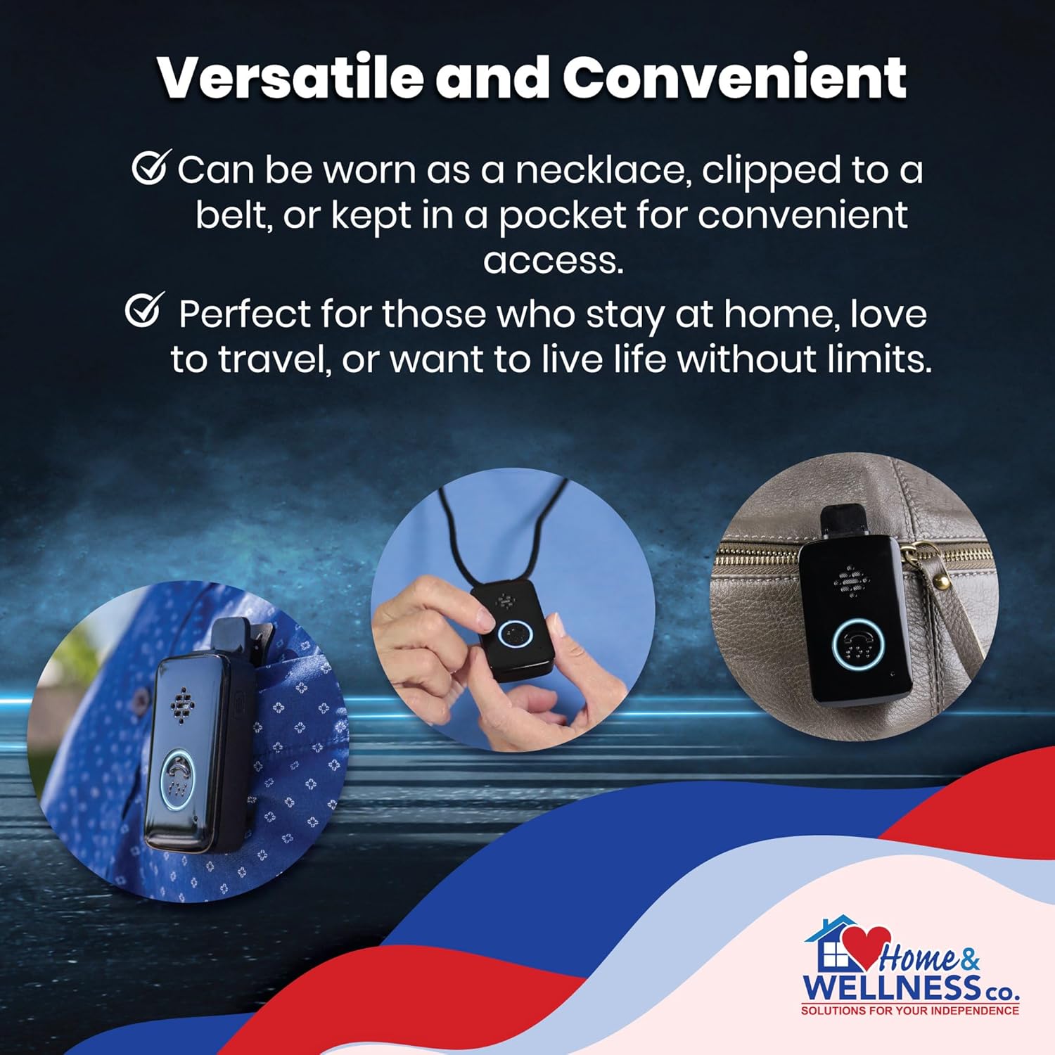 VERSATILE SAFETY WITHOUT RESTRICTIONS: Our device operates like an easy-to-use emergency cell phone, eliminating the need for a landline or base station. With a large button and built-in speaker, it’s suitable for individuals with hearing difficulties. It can be worn as a necklace or clipped to a belt for convenience.