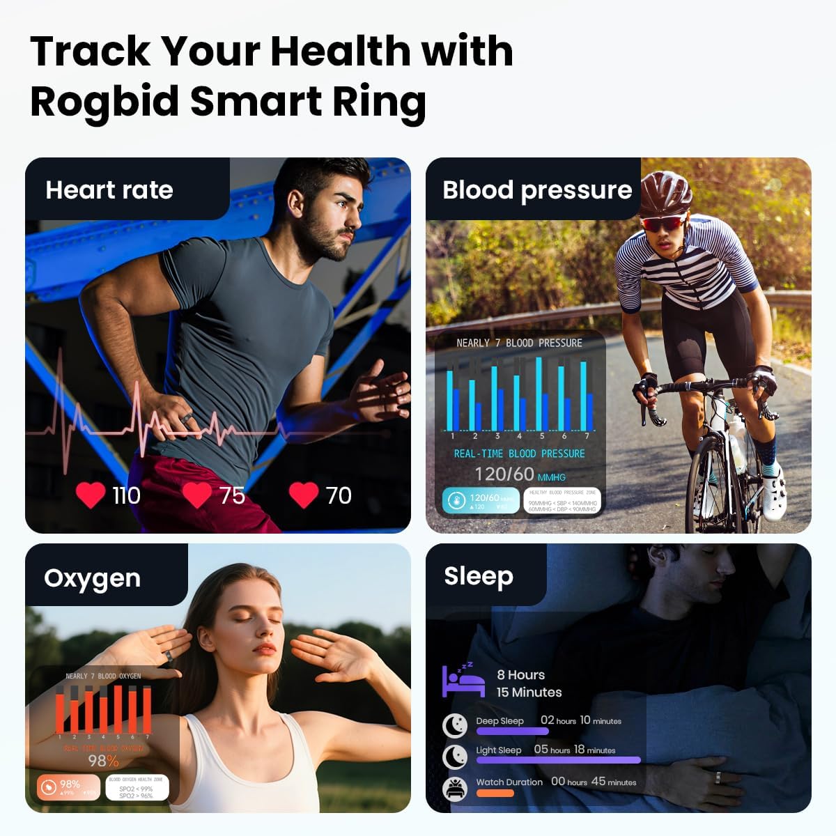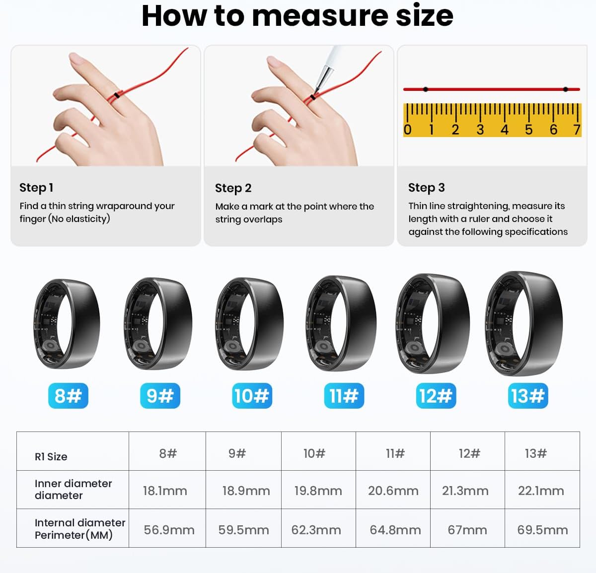 【Size Before You Buy】Before purchasing the Rogbid Smart Ring, we highly recommend you refer to the size chart and measure your finger circumference to ensure the most comfortable fit and avoid unnecessary returns or exchanges