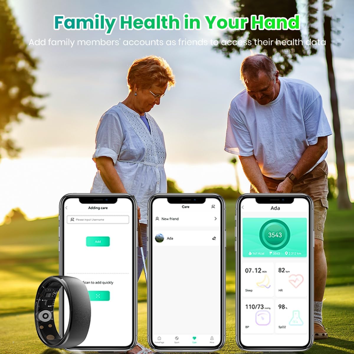 【Real-time Health Monitor】The slim smart ring health tracker has accuracy sensors that track heart rate, blood oxygen, blood pressure and other data in 24 hours a day. It helps you track health data, aiming to create an all-day personal health companion—truly bringing “Health at Your Fingertips” (NOTE: All data is for reference only and has no medical value)