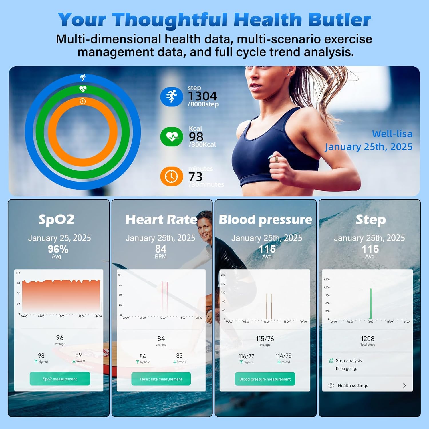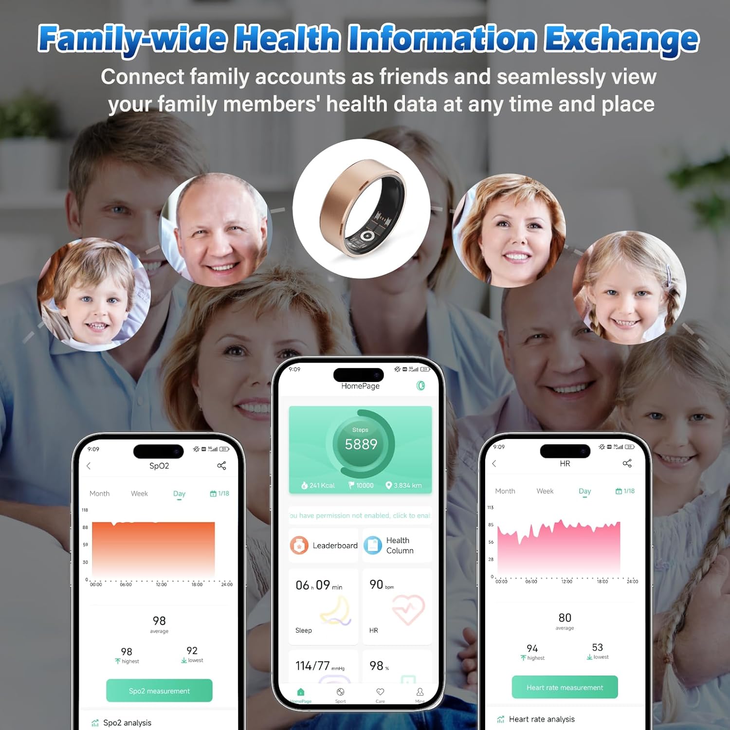 【Effortless Family Health Control】With the special app for the fitness tracking ring, you can easily enter your family members’ info and instantly view their various health data, including daily steps, blood pressure, heart rate, blood oxygen level, and sleep quality. This enables you to care for your loved ones when needed, making you feel safe and comfortable while strengthening family bonds and keeping your family healthy.