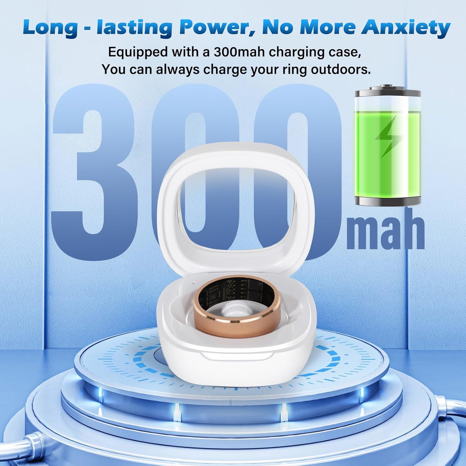 【Outstanding Battery Longevity】The ladies’ fitness ring has an extraordinary battery. In daily use, a single charge lasts 2 – 5 days and it takes just an hour to fully charge. With a 300 – mAh rechargeable case, you’ll never worry about power. Whether traveling, at the gym, or on a busy workday, you can easily recharge it. It stays in top – shape to monitor your health data all the time, giving you reliable and worry – free company.