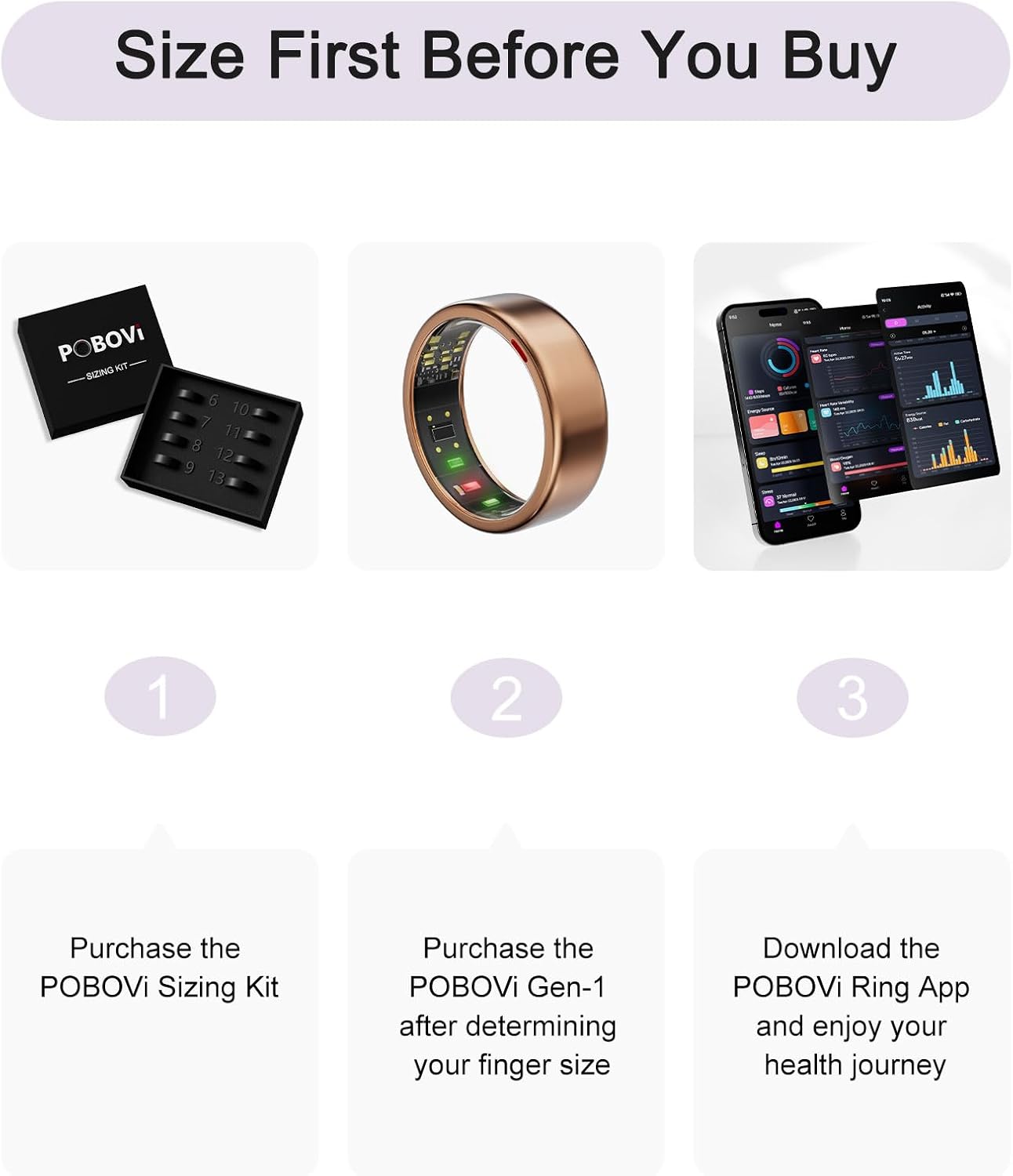 [Size Before You Buy] The size of the POBOVi Ring may differ from standard ring sizes. Please purchase the POBOVi Ring Sizing Kit on Amazon to find the perfect fit for your finger