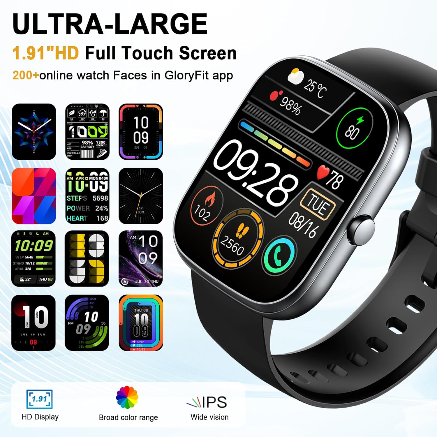 Smart Watch, 1.91″ HD Smartwatch for Men Women (Answer/Make Call), 2025 Fitness Watch Heart Rate/Activity/Step/Sleep Monitor, IP68 Waterproof 110+ Sport Mode, Step Counter Black