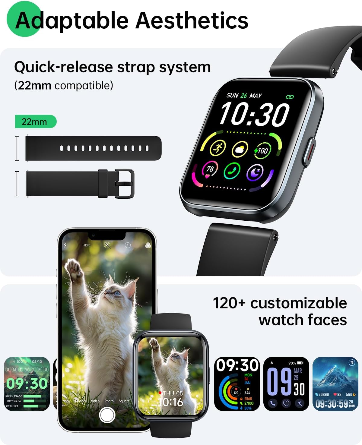 【iOS/Android Compatible +5-Year Wa-rranty】Smart Watch for Android Phones Supports iOS 12+/Android 6+ systems, The Smart Watch for iphone compatible covering 95% of mainstream iphone and android phone models. 5-year warranty: after-sales team is ready to support any product issues or suggestions