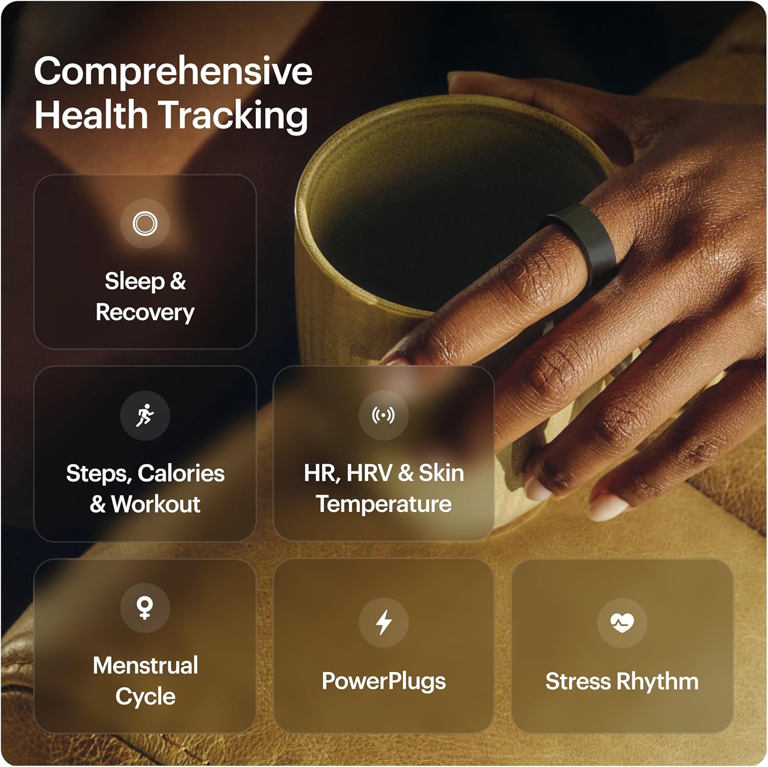 COMPREHENSIVE HEALTH TRACKING: The Ultrahuman Ring measures a wide range of metrics including sleep, activity, stress, heart health, movement, workouts, and recovery. Stay on top of your health and fitness goals with detailed insights to optimize your performance and well-being.