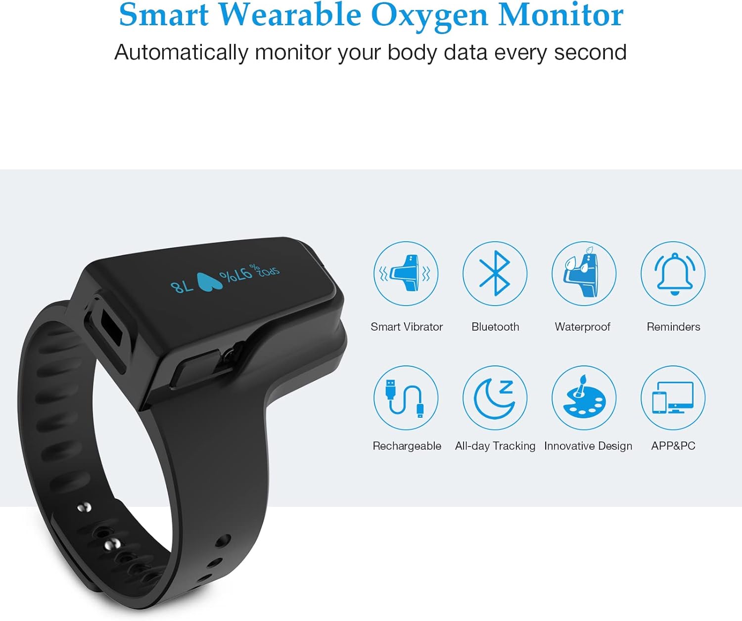 Wellue O2 Pulse Oximeter with Smart Reminder | Blood Oxygen Saturation Monitor for SpO2 and Heart Rate Tracking Continuously, Bluetooth Finger Ring with Free APP &PC Report, Style 1