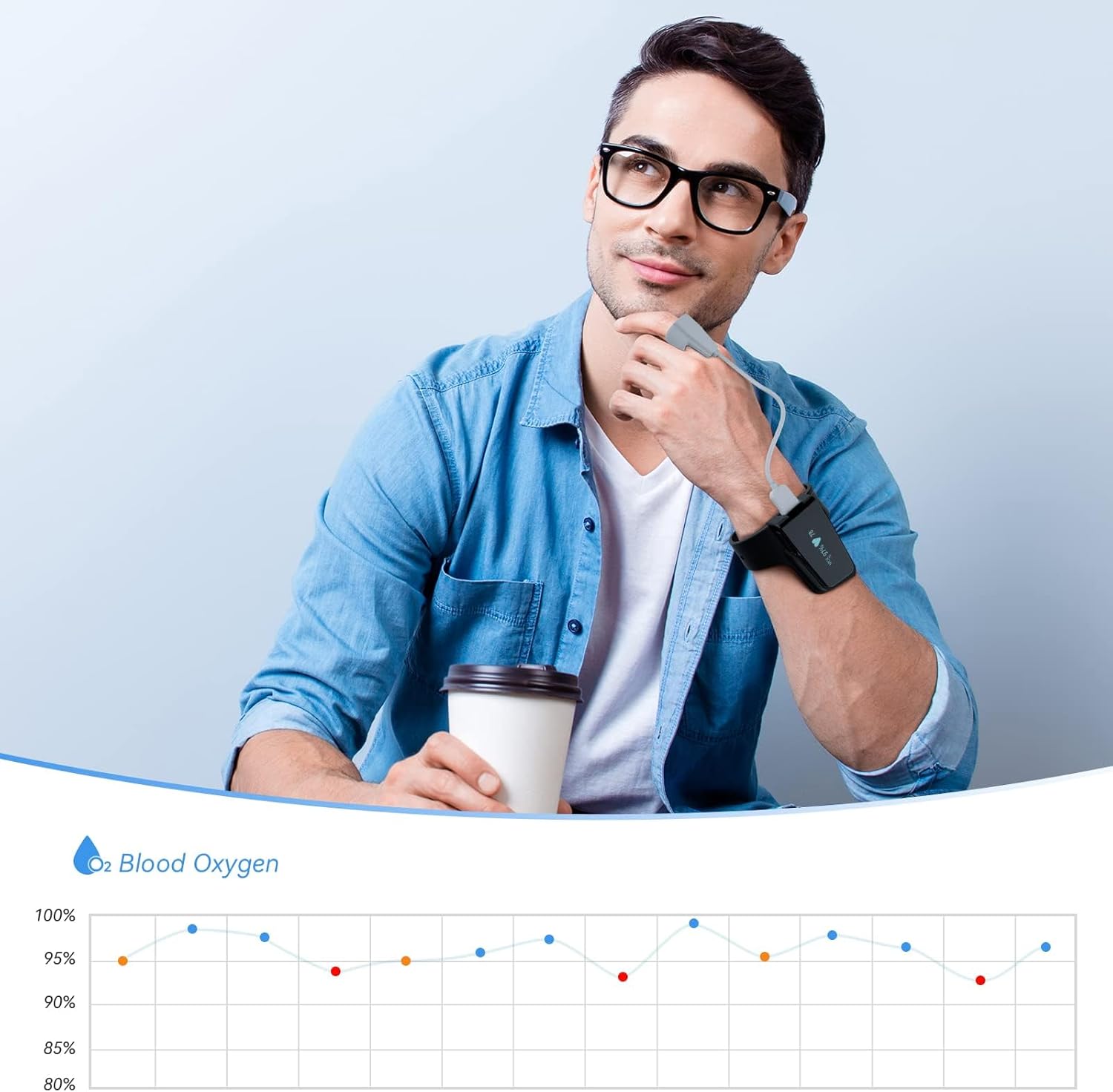 【All-day Monitoring】Checkme O2 Max records your O2 level (blood O2 saturation level), pulse rate, and motion with extremely accuracy.