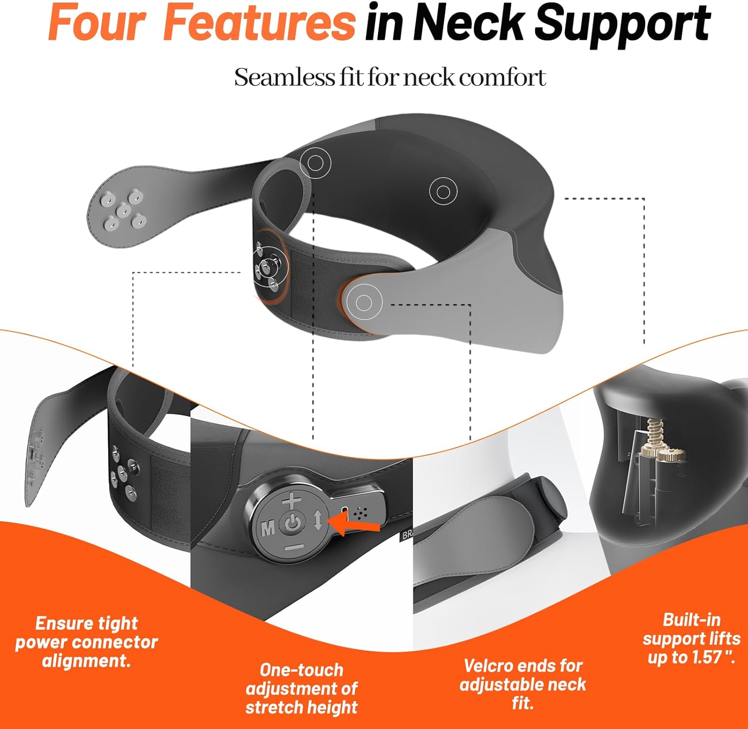 Adjustable Motorized Cervical Traction:this neck tractor is designed to reduce stress on the neck by adjusting posture and stretching the neck, up to 1.57 inches adjustable in height up and down to achieve the neck stretches effect
