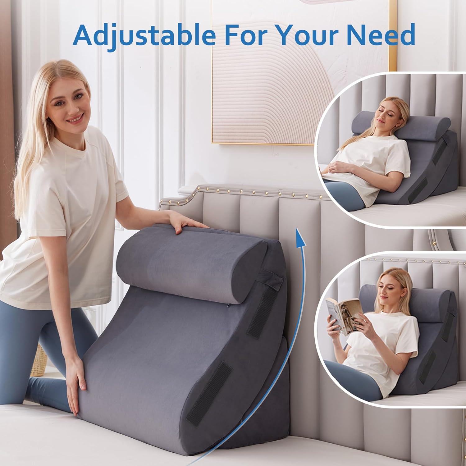 【Ergonomic Design for Pain Relief】Our wedge pillow set for after surgery offers 5 customizable parts, which can be used in any combination to meet the personalized requirements of different people’s sleeping positions and needs. The incline design of adjustable wedge pillow is ergonomically designed and suitable for after surgery and relief for acid reflux, snoring, breathing problems, back, leg, neck, head, and low back pain