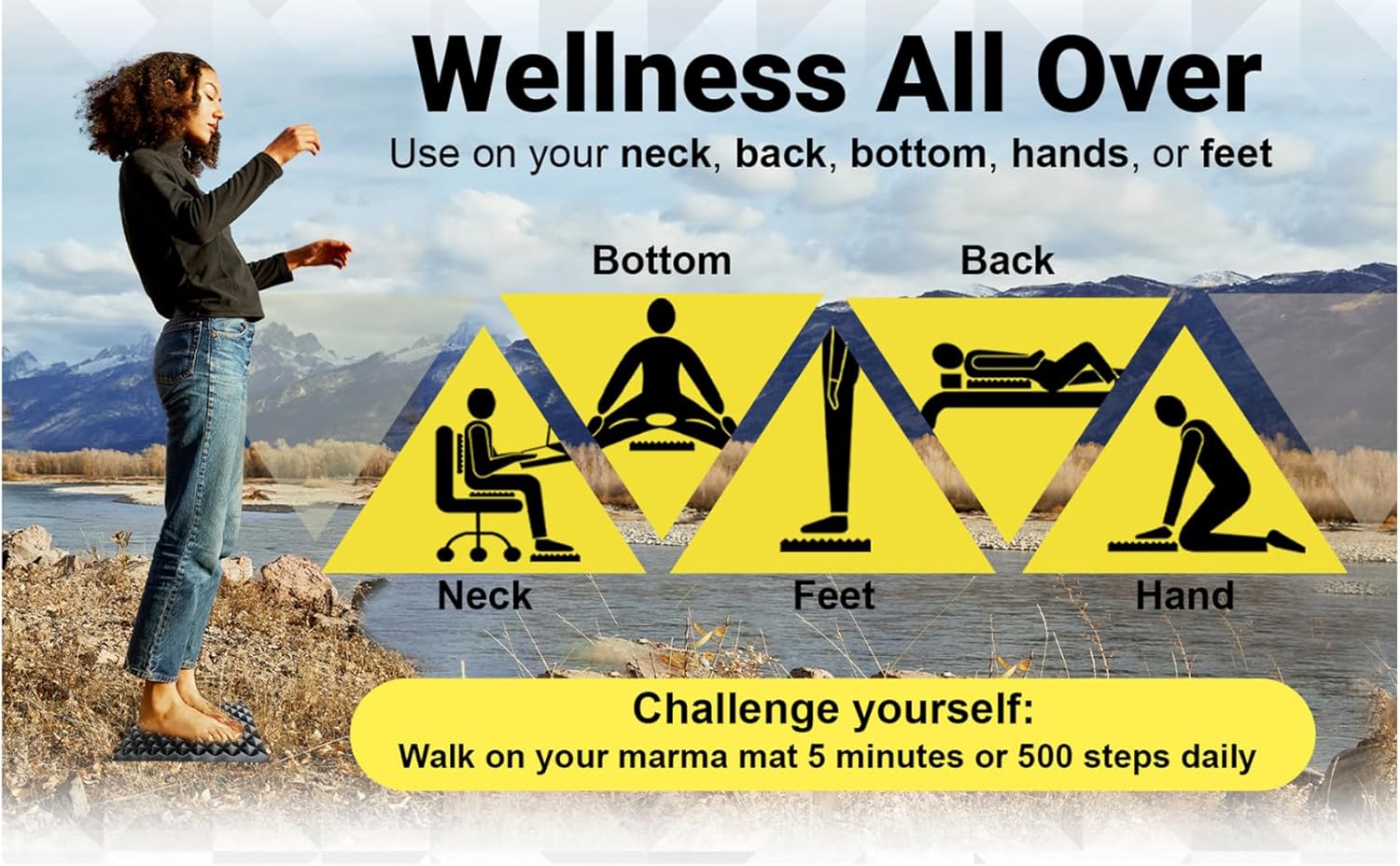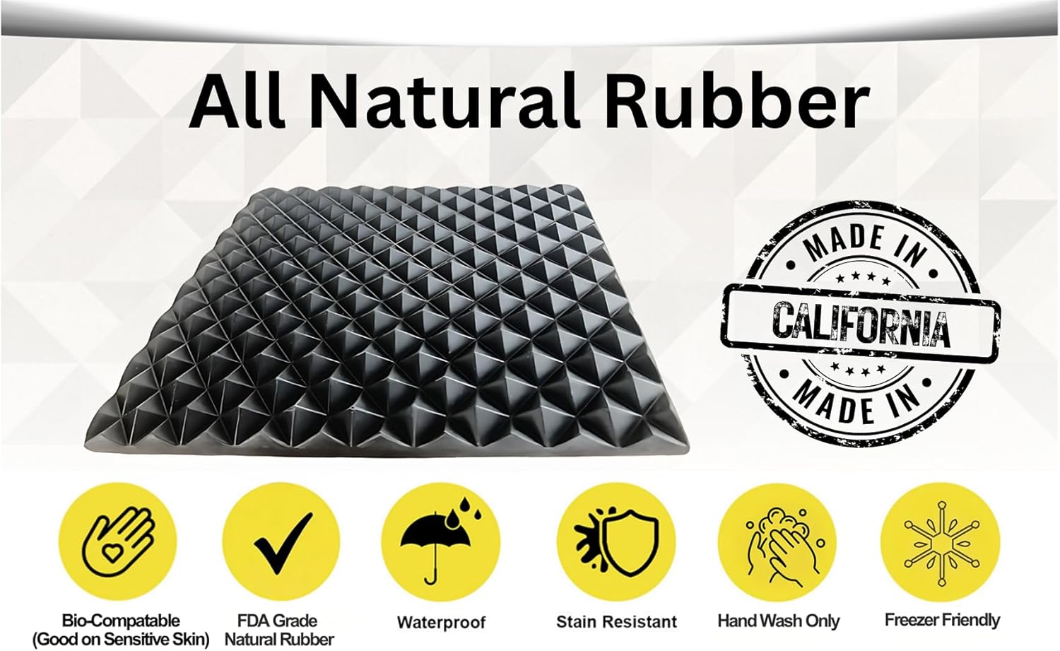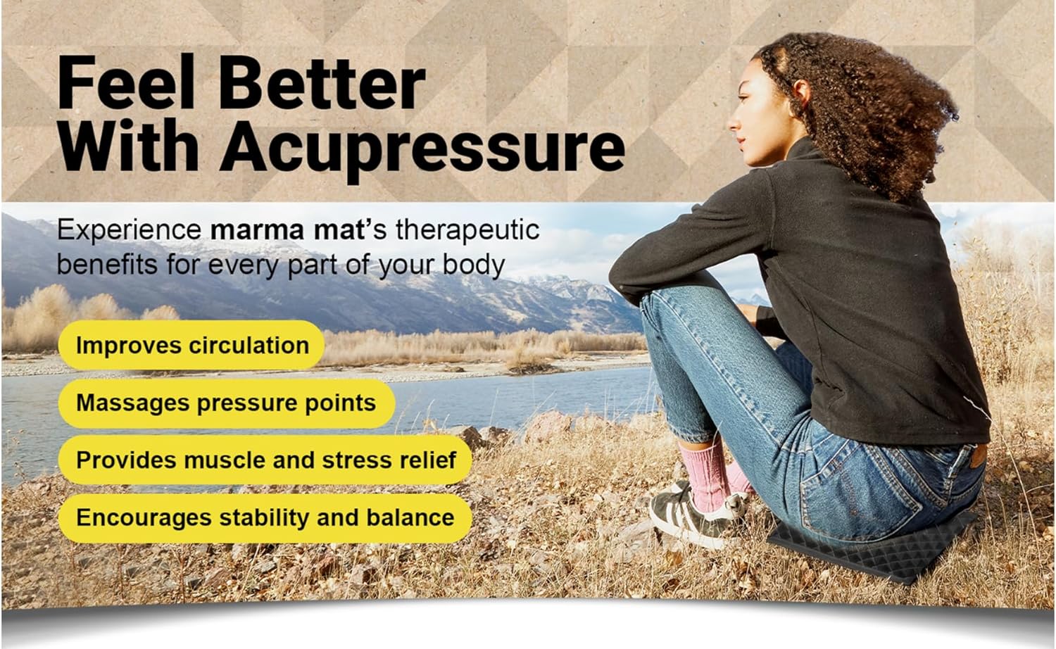 Experience a deep connection to the earth with our quality made all-natural rubber marma mat, crafted from sustainably sourced materials. It provides a uniquely grounding and deeply supportive acupressure experience. Ideal for those seeking a firm yet yielding pressure, the hypoallergenic rubber pyramids work to activate marma points, release tension, improve physical stability and enhance mental focus while connecting with the earth. The marma mat is also praised for its exceptional durability and non-slip grip. It delivers a powerful, restorative affects for users of all ages & abilities.
