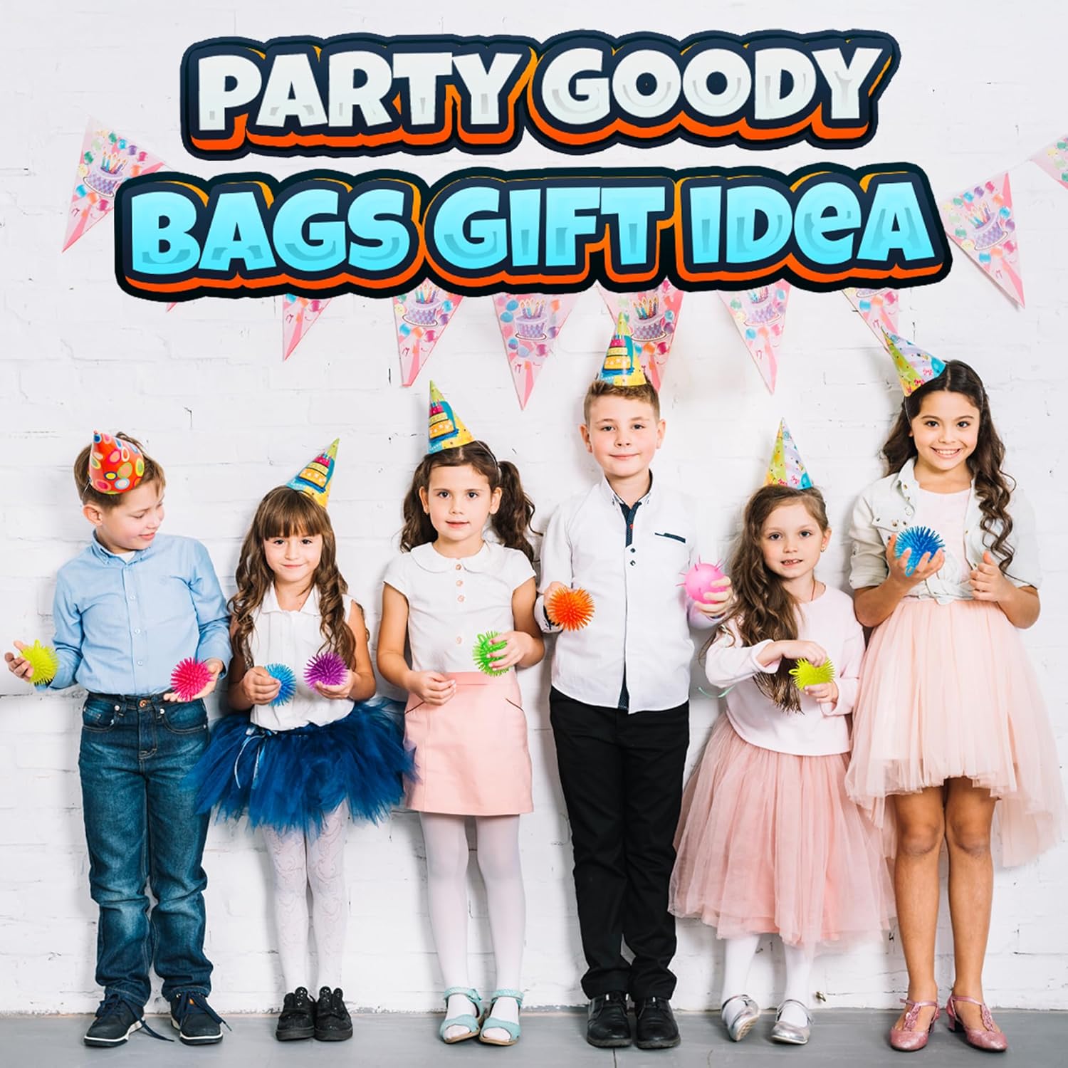 HIGH QUALITY: Bedwina puff balls are thicker and more sturdy than other puffer ball, so you can be rest assured they will last much longer. Each ball has a loop. Great for birthday party favors, office events, squinkies balls toys for classroom, fidgets for treasure box toys, goodie bags, party favors and more. Recommended for ages 3+