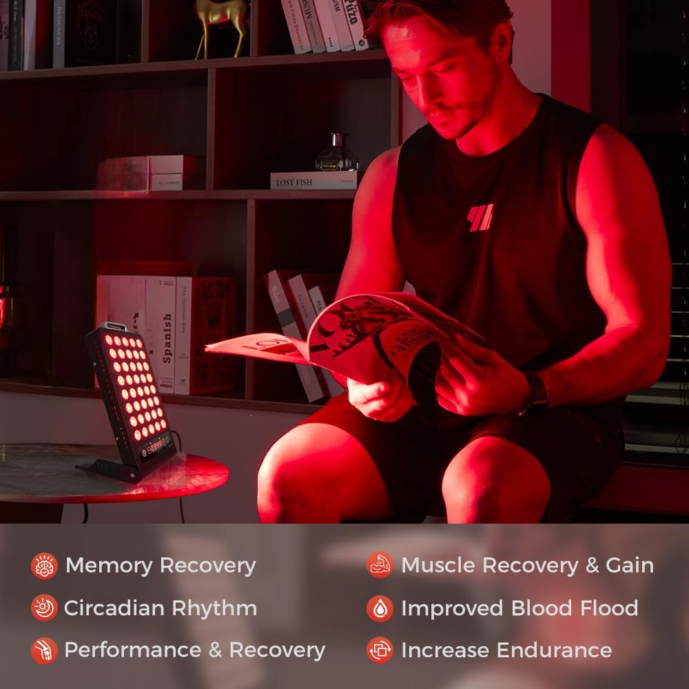 Smart Design, Simple Operation: Equipped with an intuitive touch control panel and foldable stand, this powerful red light therapy device is built for ease and durability. Adjust the angle to suit your position: sitting, standing, or lying down. Compact enough for your gym bag or suitcase, it brings healing light wherever you go.