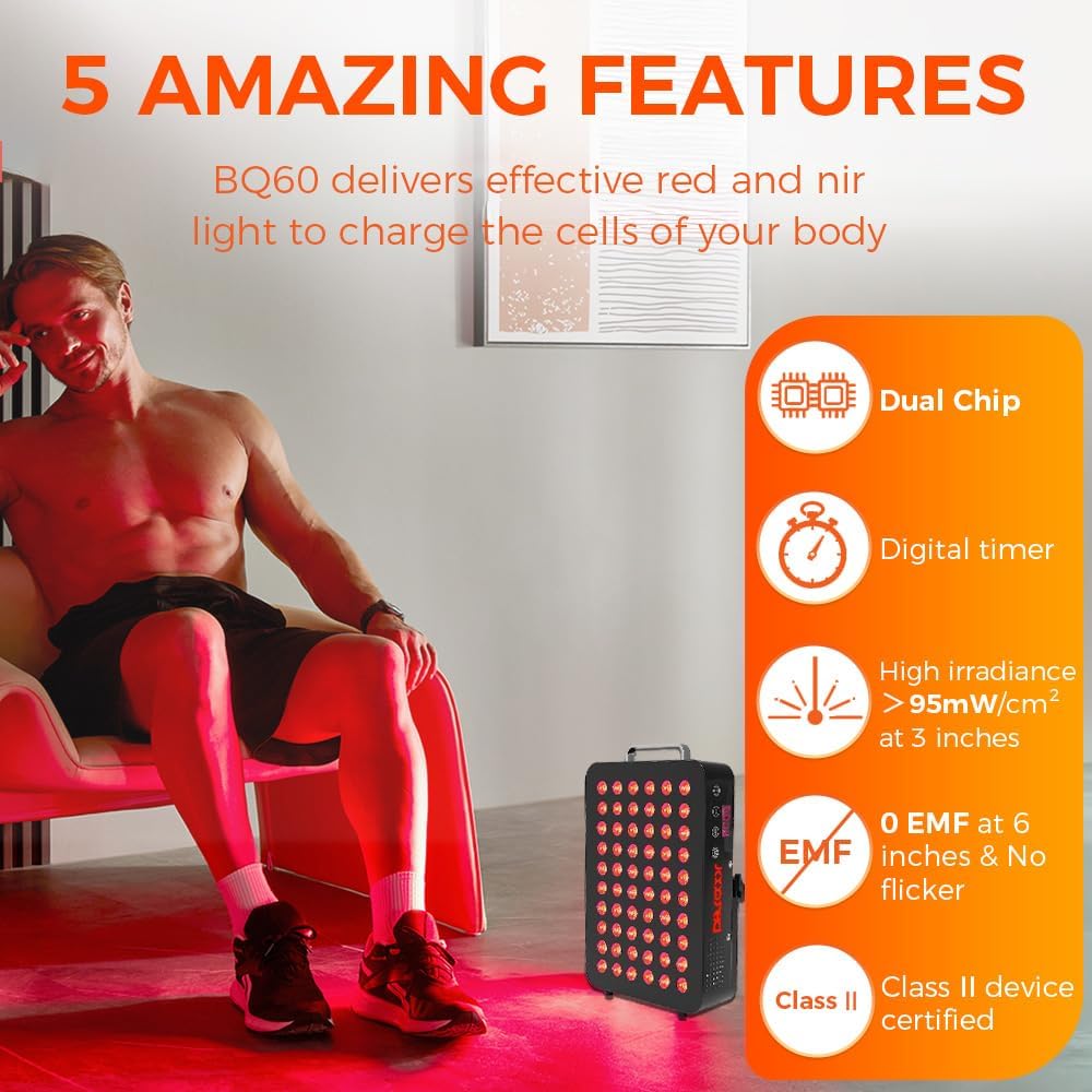 BestQool Red Light Therapy, Dual Chip Clinical Grade LED Device with Near-Infrared Light 660nm 850nm High Power Panel, Ideal for Body, Face, Recovery, Improve Sleep, Skin Health, 105W (Black 60)