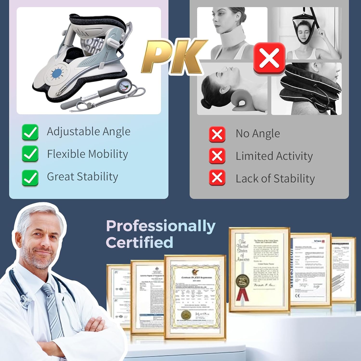 Cervical Neck Traction Device, Neck Stretcher for Cervical Pain Relief, Air Pump Neck Brace with 3 Power Traction and 8 Airbag Support, Neck Decompression and Neck Tension Relief
