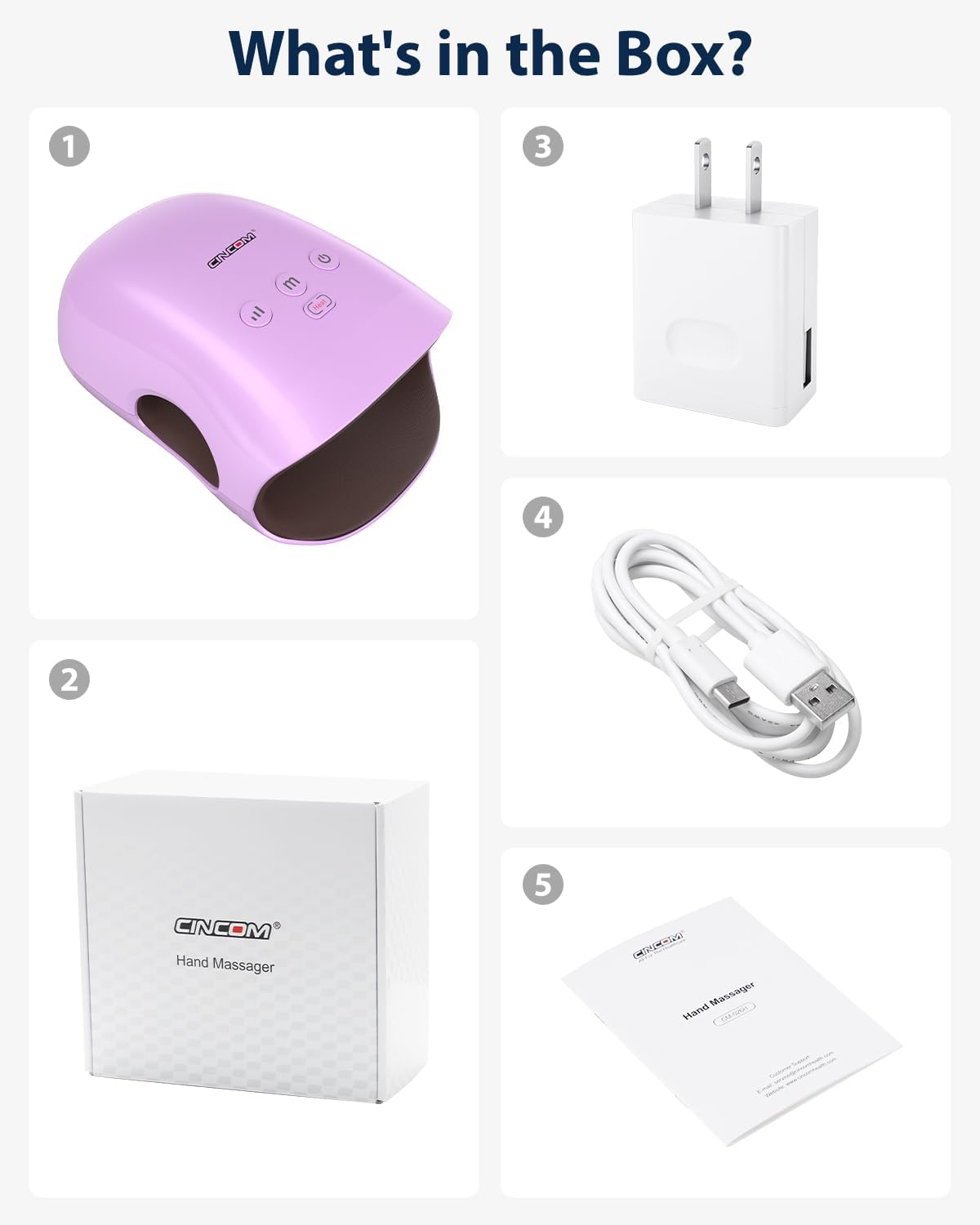CINCOM Hand Massager – Cordless Hand Massager with Heat and Compression for Arthritis and Carpal Tunnel, Gifts for Women(Purple)