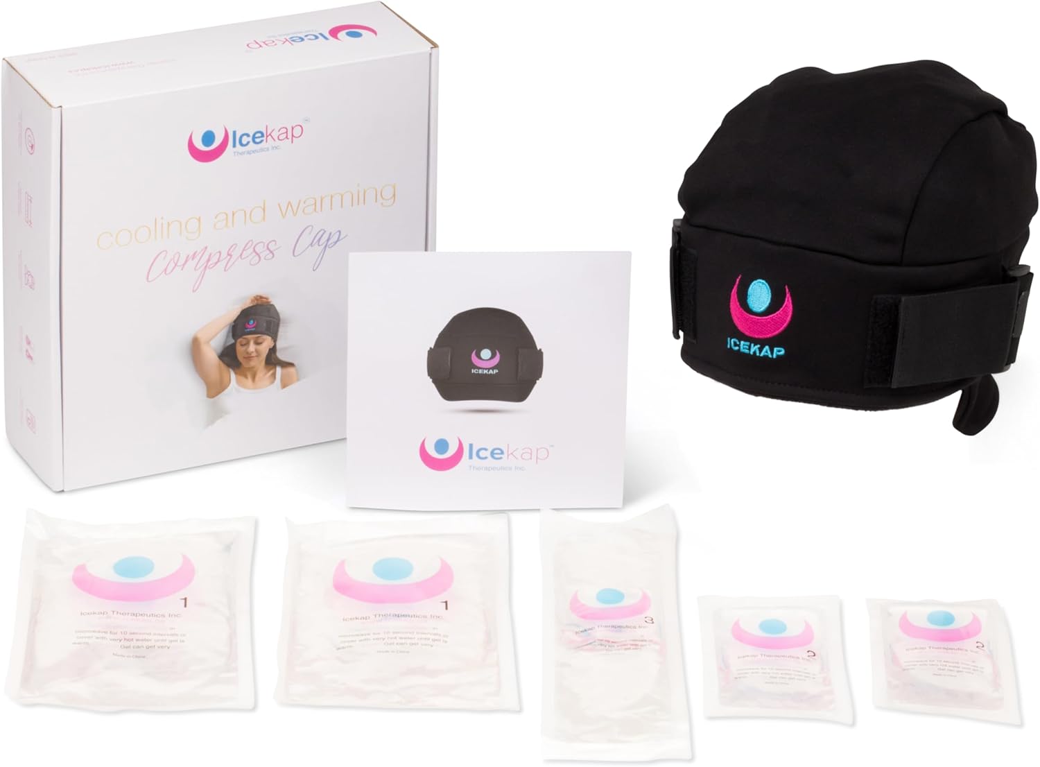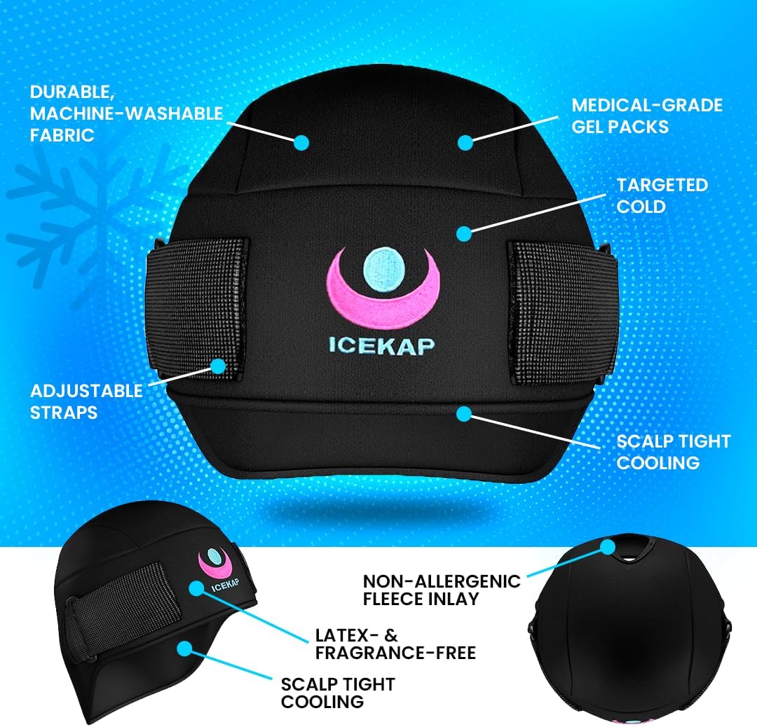 LONGER LASTING, EXTRA STRENGTH COOLING: Medical-grade ice packs are the gold standard for heavy duty scalp cooling, and Icekap Cool Cap uses 5 of them to provide hours of relief. People wear Icekap Cool Cap to fight the discomfort of headaches, hot flashes, night sweats (mild or severe episodes,) and often wear it as they fall asleep.