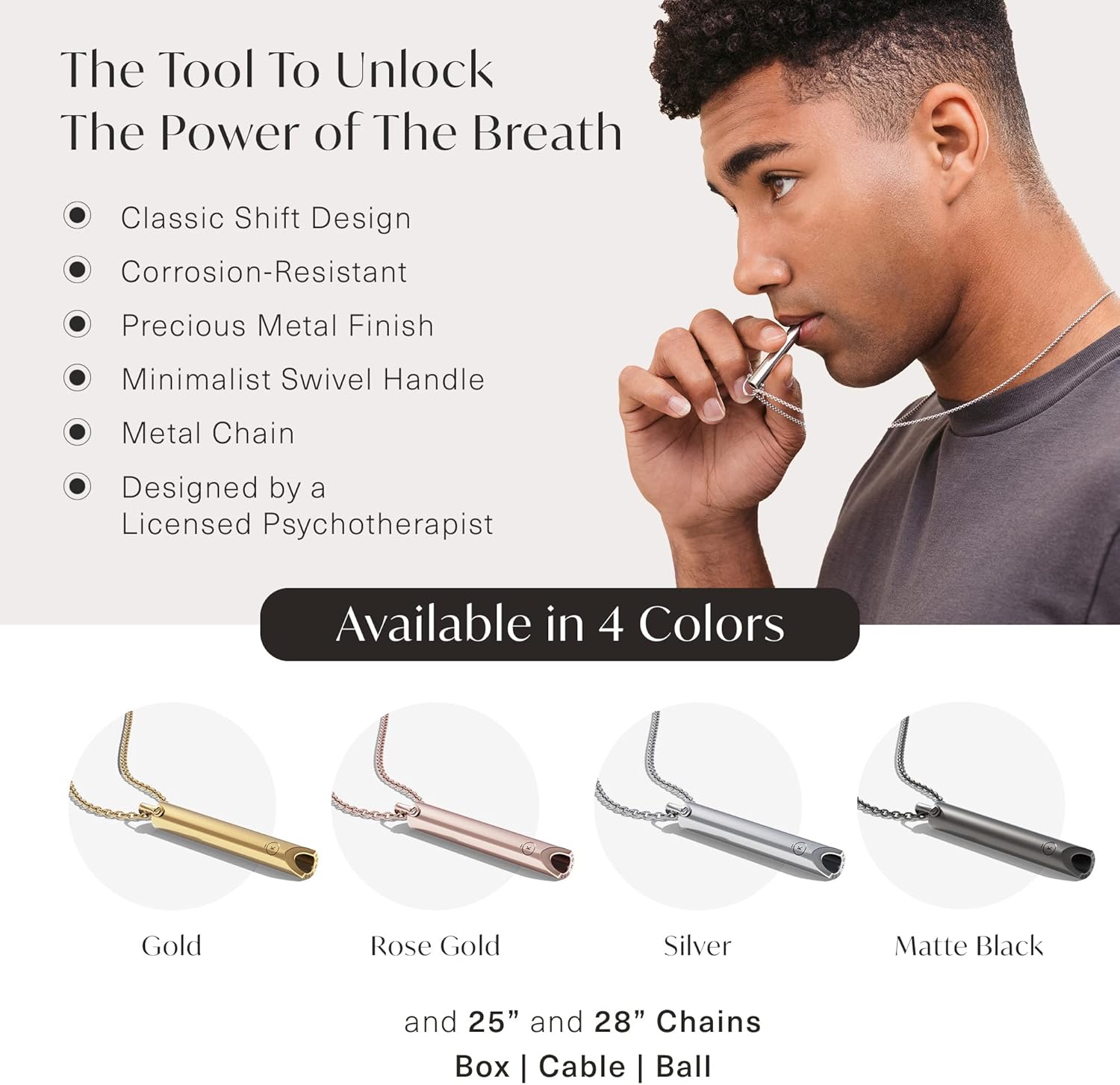 KOMUSO Breathing Necklace Classic Shift – For Habitual Breath Practice, Meditation, Stress and Anxiety Relief – Expert-Designed Breathing Tool to Promote Calm, Mindfulness and Relaxation