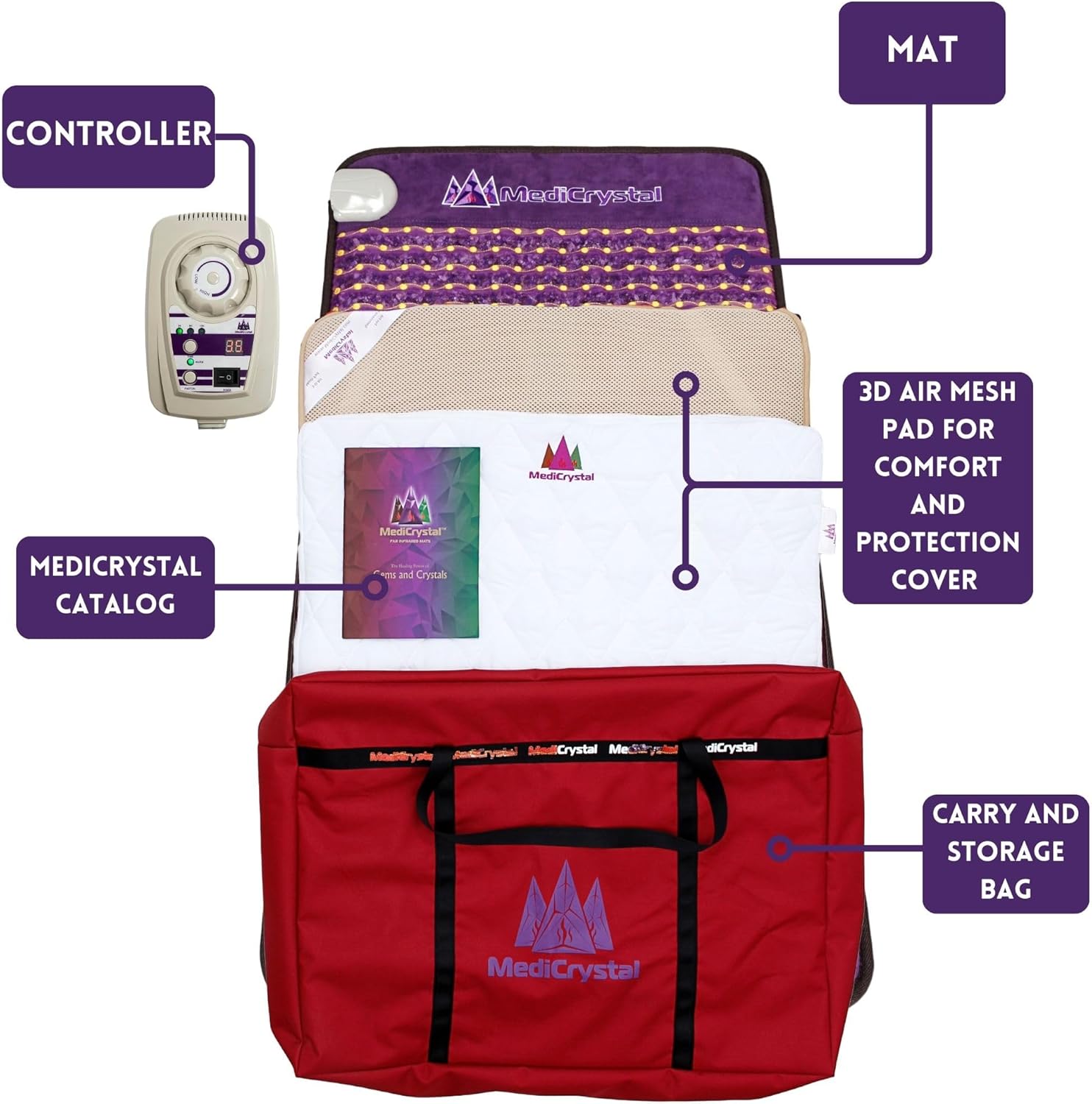 MediCrystal Far Infrared Amethyst Mat – Natural Agates + Photon Red Lights – FDA Registered Manufacturer – Negative Ion – FIR Heating Pad (Flex 72″ L x 24″ W)