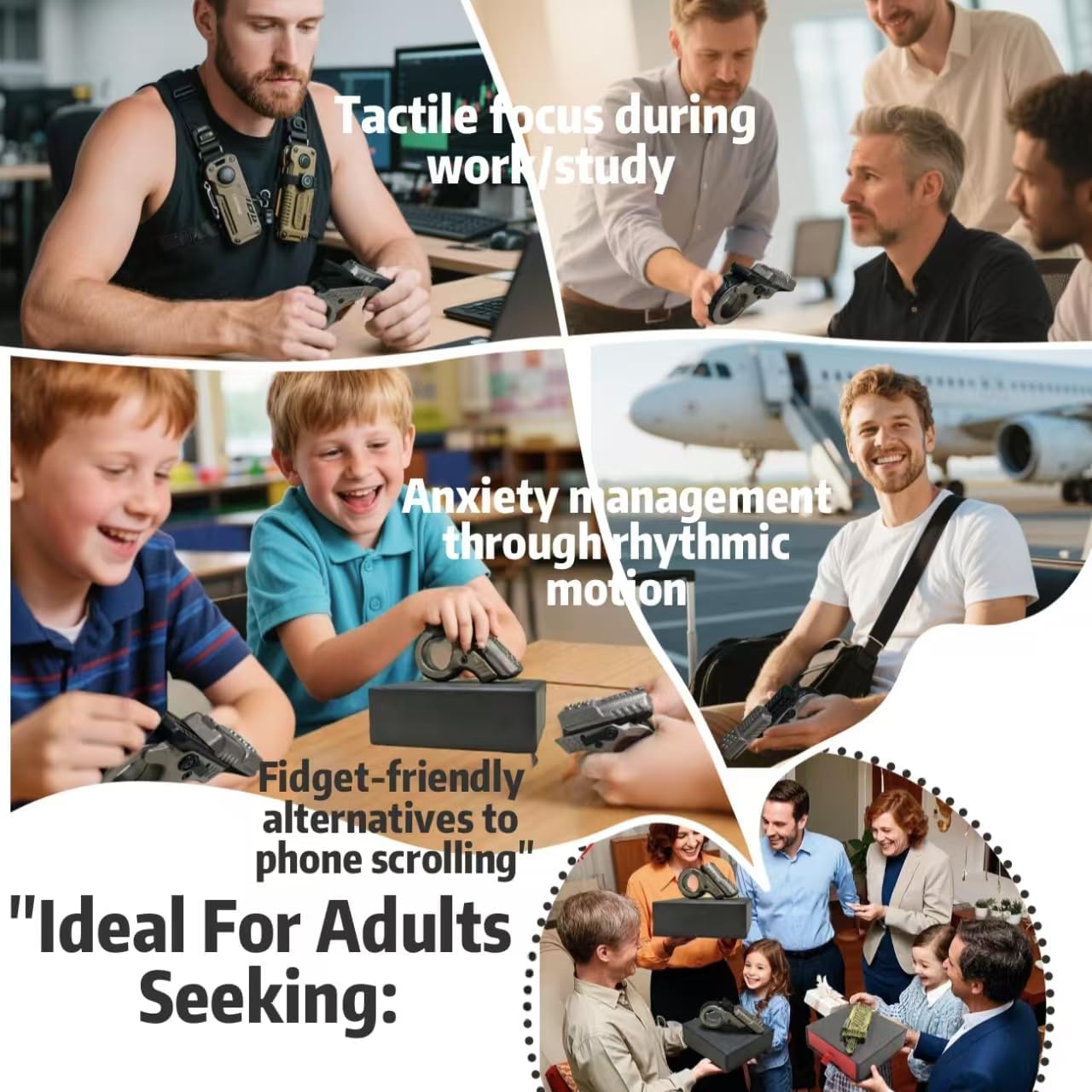 Unleash precision-engineered stress relief with our zinc alloy Fidget Gun Slider. Designed by neurodivergent adults for relentless daily use, its 5 unique mechanisms deliver: