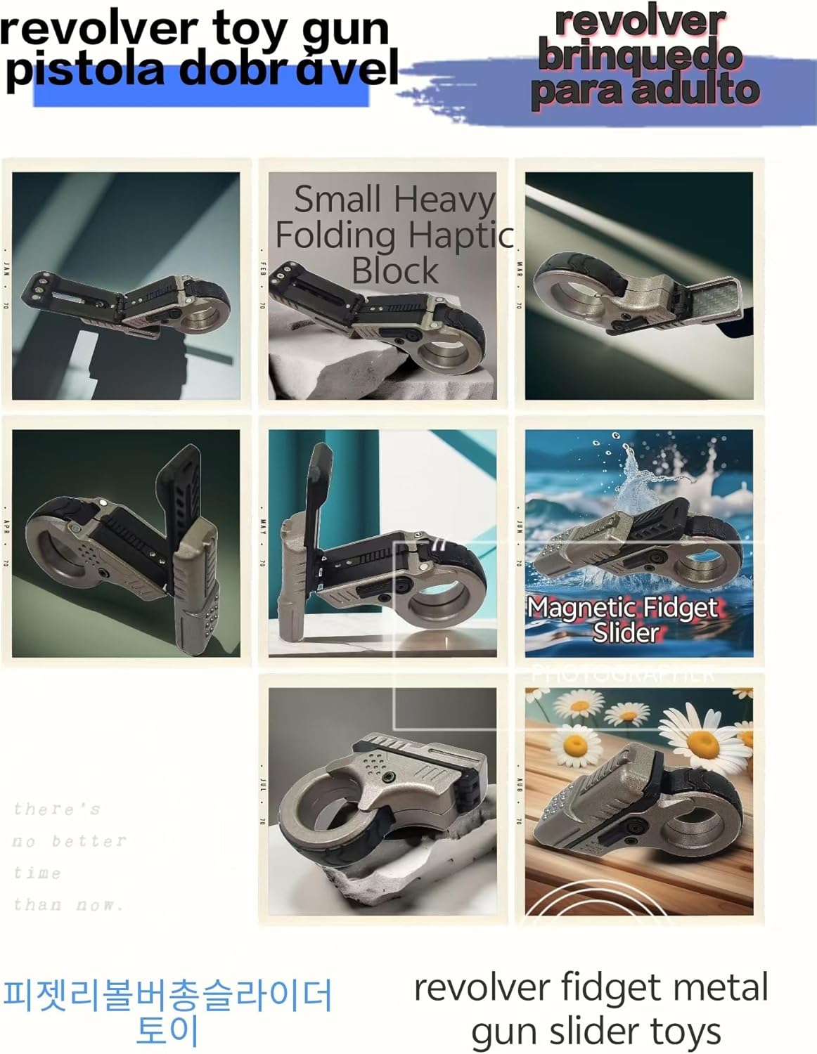 Metal Fidget Gun Slider Toy for Adults – 5-in-1 Stress Relief Modes, Zinc Alloy Folding Ratchet Pistol with Haptic Feedback, Portable Desk Toy for Anxiety & ADHD