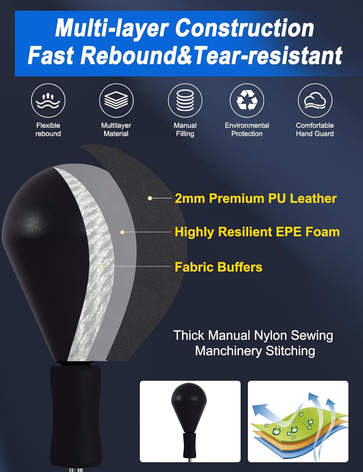 Easy rebound:We’ve designed our freestanding Taekwondo speed bag to ensure you’re safe and comfortable.The bottom of the punching bag stand pole is fitted with a strong and durable spring so you can be sure that the sandbag is built to last. Don’t worry, this clever design ensures that the spring boxing bag springs back into place after each hit