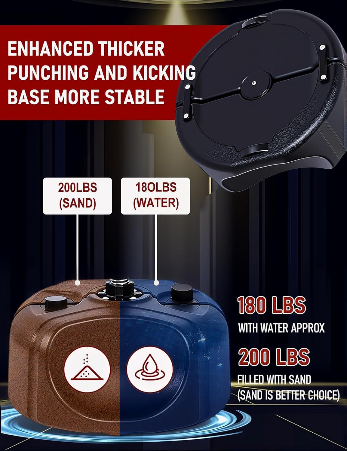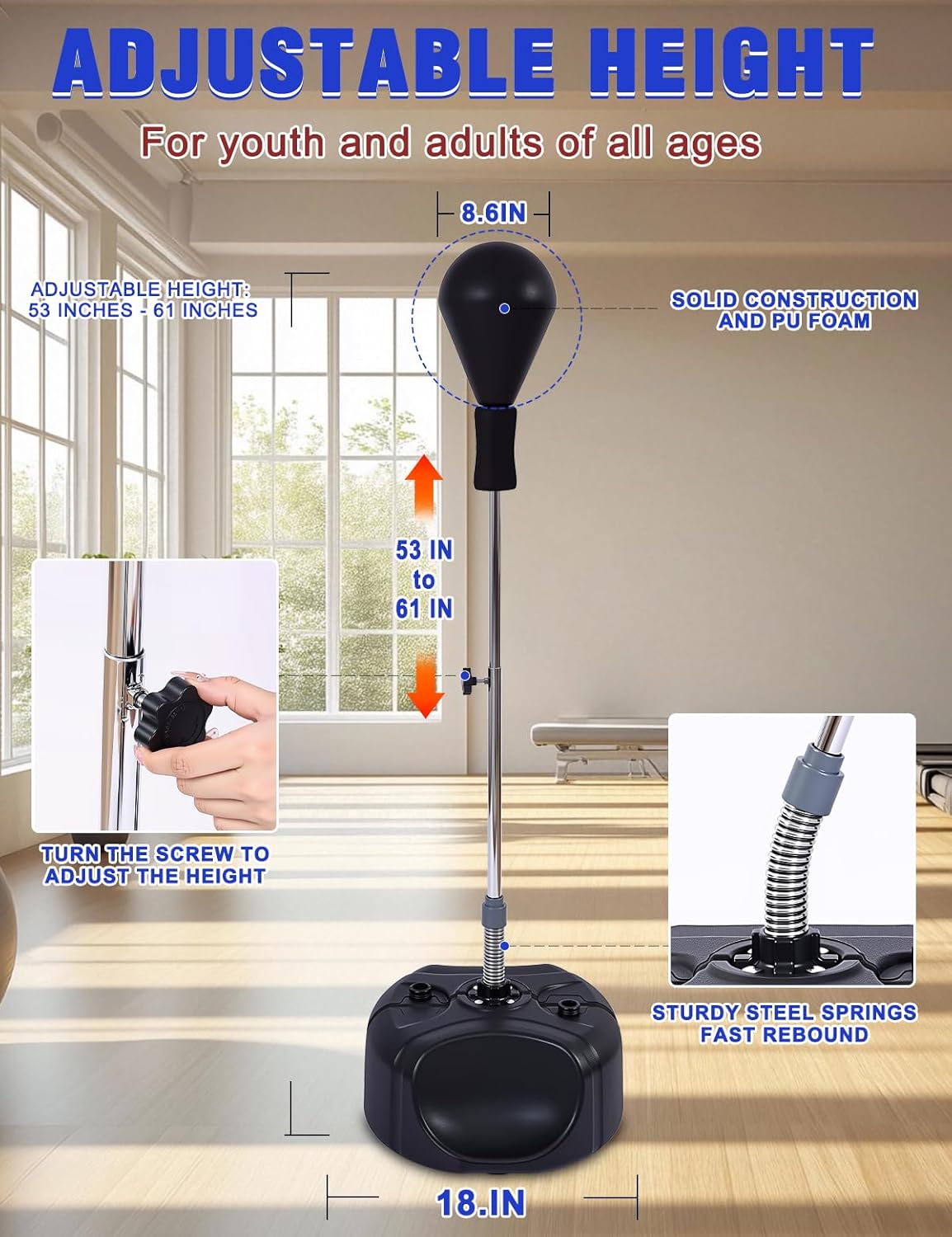 High quality – stable and durable:We understand how important it is to have a product of superior quality and consistent performance. That’s why we made sure this product is built to last, using only the best materials and paying close attention to detail. Designed with a heavy-duty base for stability and durability, the punching bag for teens can hold up to 66 pounds of water or 100 pounds of sand