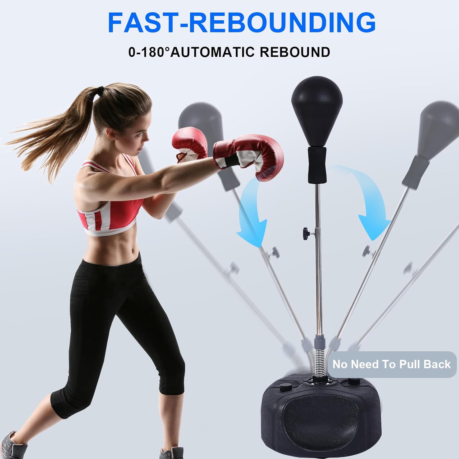 Punching Bag with Stand-Fast Bounceback to Increase Speed, Reflexes, and Stamina – Height Adjustable for Training, Boxing Equipment, Stress Relief & Fitness