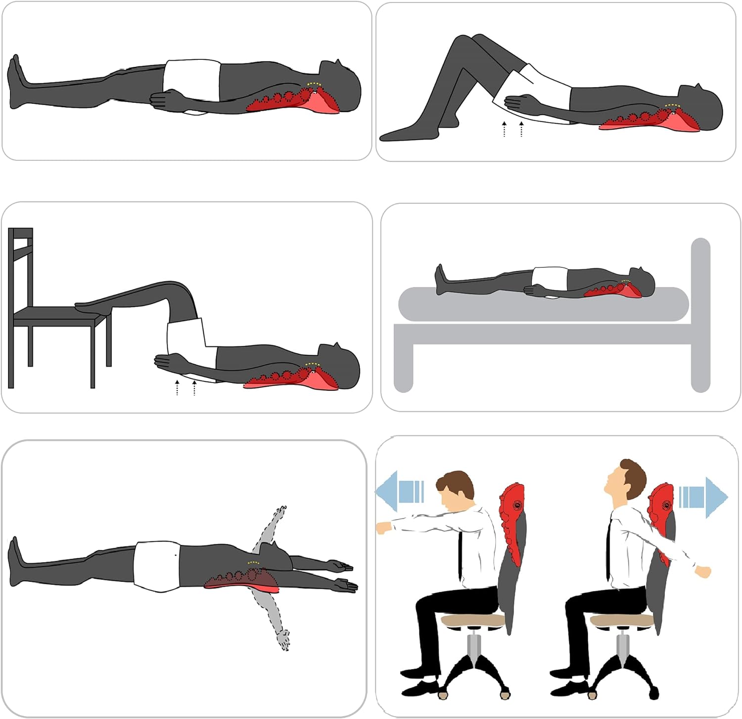 Chronic Pain Relief: Offers myofascial trigger point release for tight trapezius muscles, aiding in the alleviation of neck, upper back, and shoulder pain, as well as migraines, tension headaches, occipital neuralgia, suboccipital headaches, levator scapulae syndrome, thoracic outlet syndrome, and Dowager’s hump