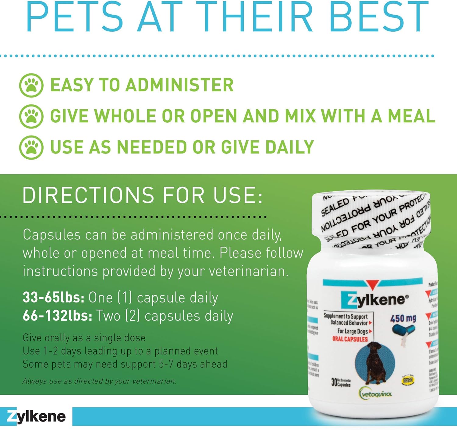 Easy to Administer – Open the capsule of Zylkene and add it to your pet’s food daily to help them cope with external stresses like separation and improve daily behavior