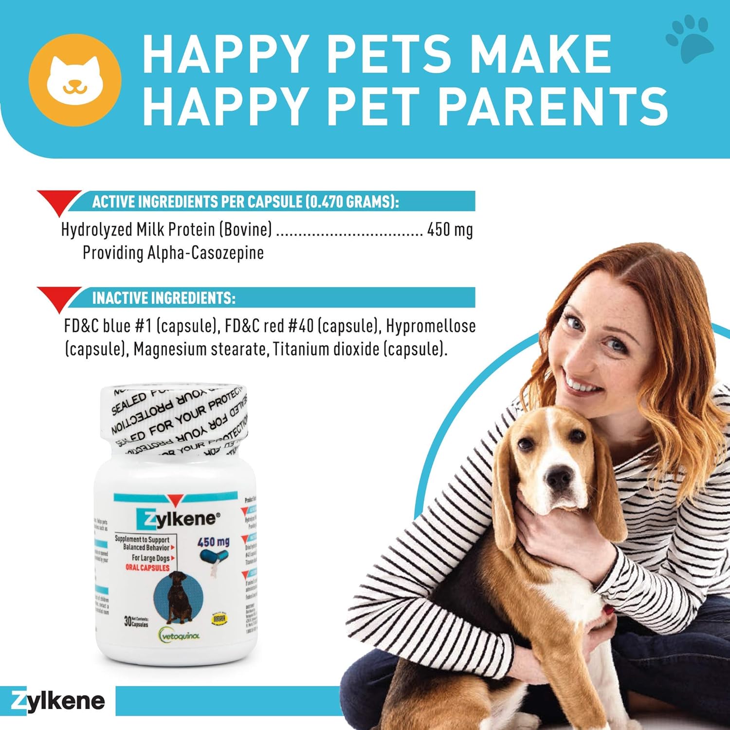 Lactose-Free and Easy on Sensitive Stomachs – Zylkene’s dog calming and cat calming supplements are lactose-free and made with natural ingredients that are easy on sensitive stomachs