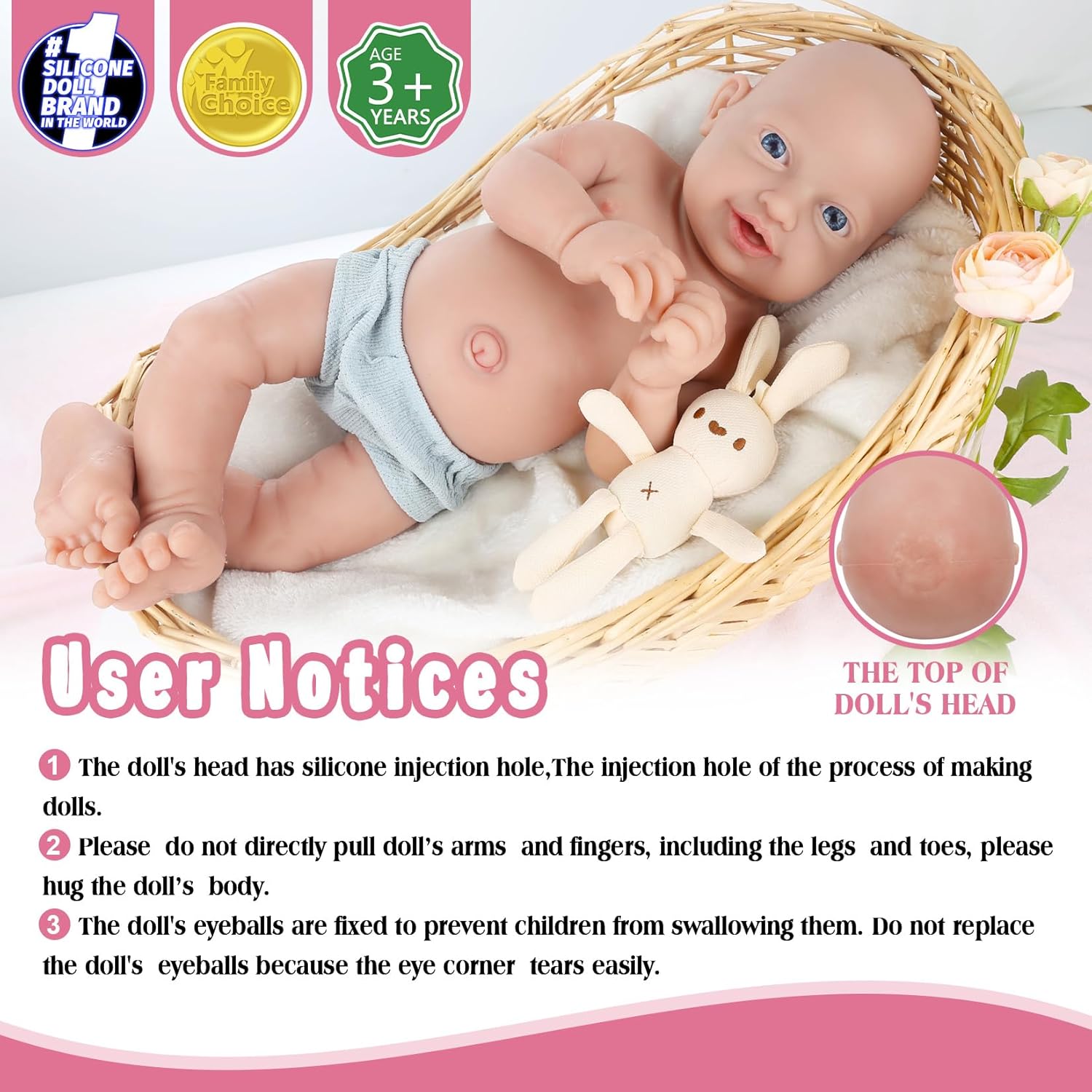 🍼Soft and Squishy Silicone Material: Our dolls look incredibly lifelike thanks to the use of platinum liquid silicone, which is different from solid silicone materials. making them safer, non-toxic, and waterproof. They are suitable for bathing, and the certification complies with ASTM F963, CPC, and EU EN71 safety requirements for children aged 3 and above.