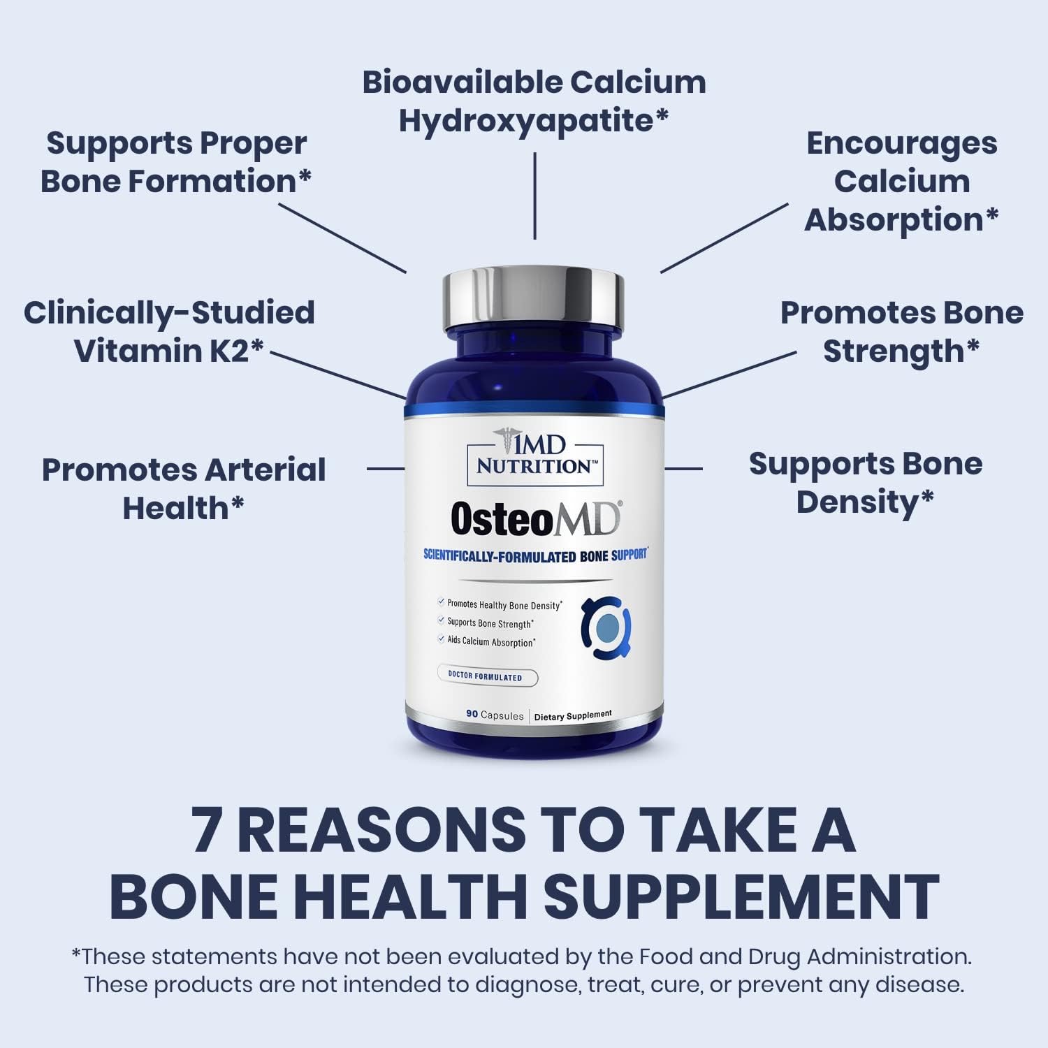 1MD Nutrition OsteoMD for Comprehensive Bone Support | with Calcium Hydroxyapatite, Vitamin D3 & K2 | 180 Capsules (2-Pack)