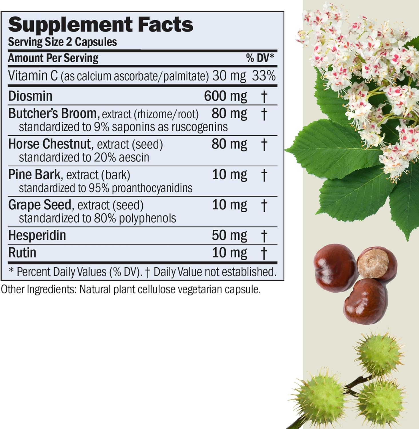 High Potency Botanical Blend with Diosmin, Butcher’s Broom, Horse Chestnut & More. Supports Veins, Capillaries and Circulation.