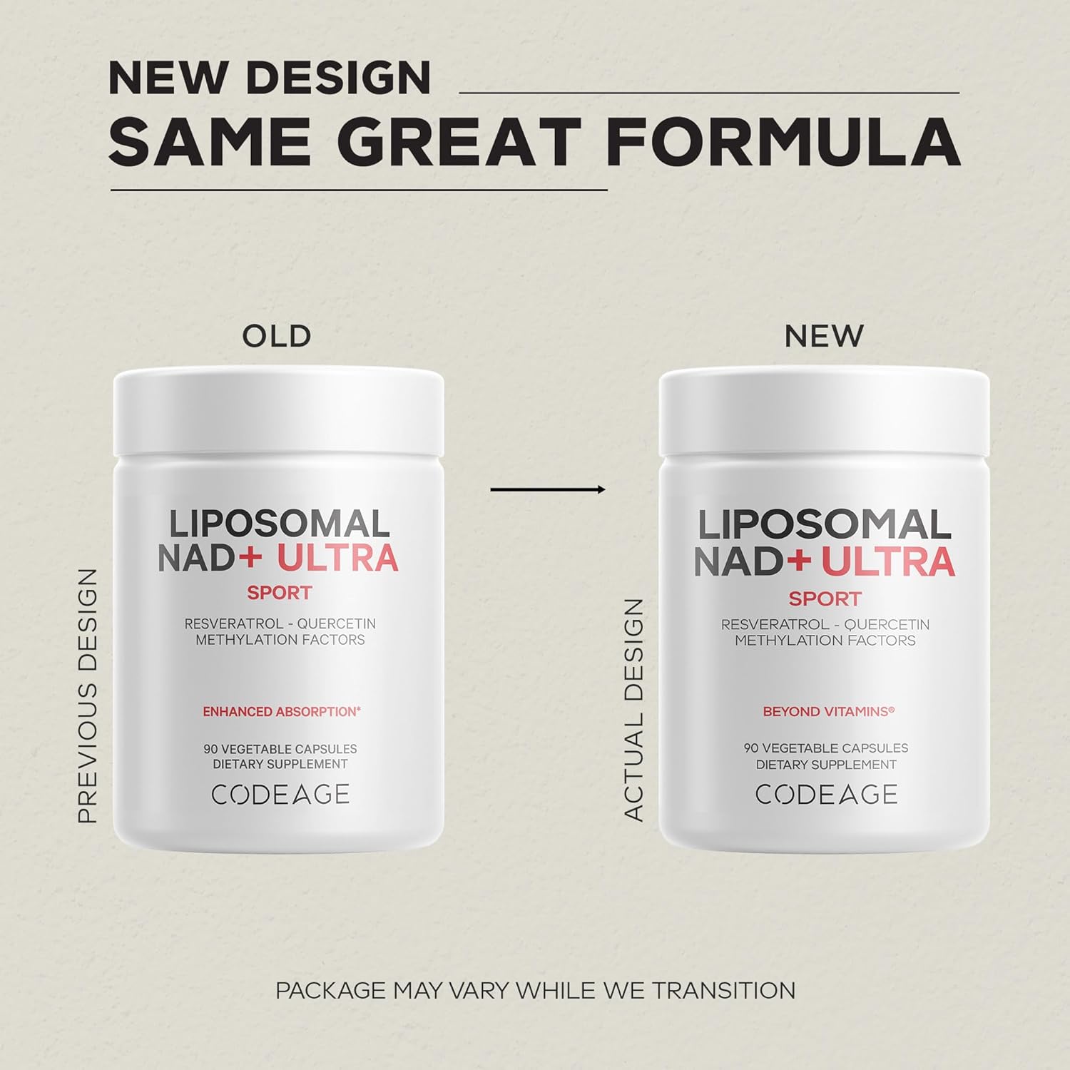 Advanced NAD+ Formula: Codeage Liposomal NAD+ Ultra supplement provides 500 mg of NAD+ (Nicotinamide Adenine Dinucleotide) per serving, combined with quercetin, trans-resveratrol, and betaine anhydrous.
