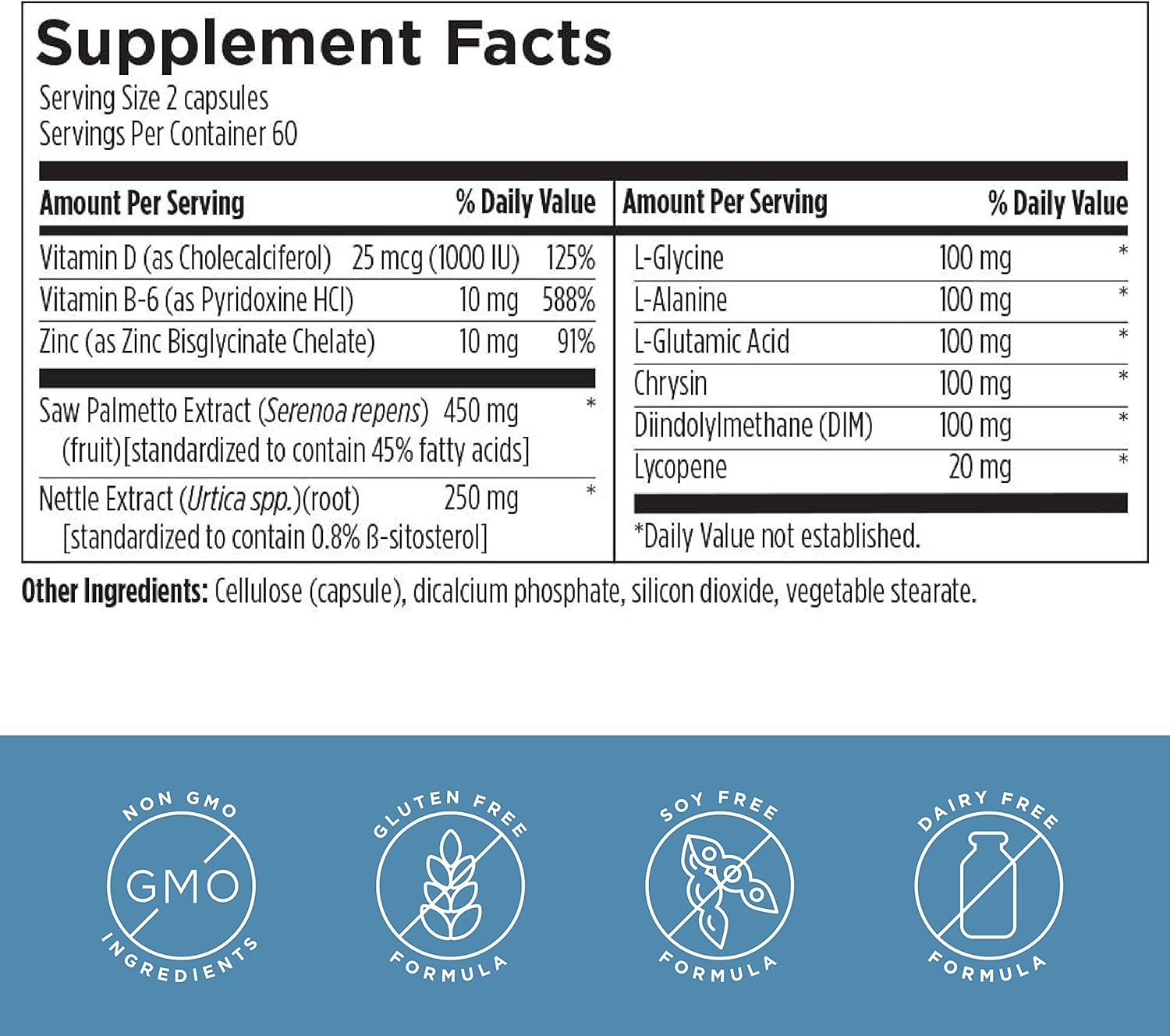 Saw Palmetto & More – Contains Zinc, Lycopene, Saw Palmetto, Glycine, Alanine, Glutamic Acid, DIM (Diindolylmethane) and Chrysin. *