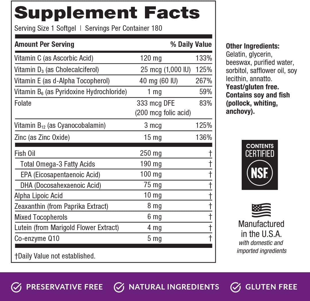 Manufactured in the USA with domestic and imported ingredients – EyePromise sources natural ingredients, and our Omega-3 fish oil meets P65 and USP requirements. We’ve done the work to source responsibly and openly and certify our formulations, so you can be confident EyePromise products are supporting your eye health