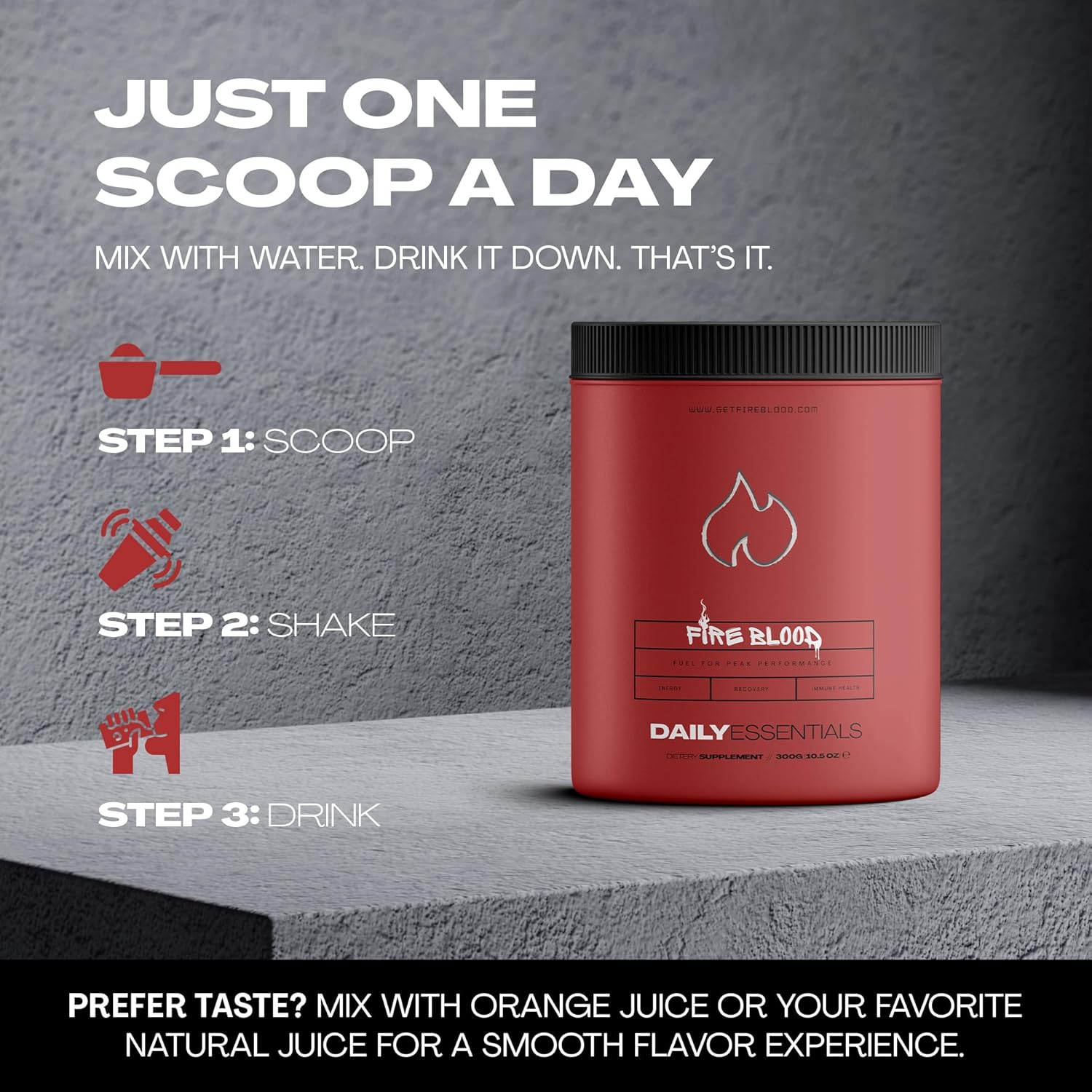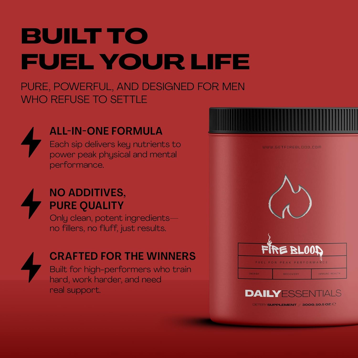 🔥 FOR MEN, WOMEN, PEOPLE AGED 18+: Fireblood is a go-to all-in-one nutritional supplement for those serious about health and performance. A perfectly balanced formula of the highest quality ingredients delivering an optimum dose for those wanting to feel and perform at their best. Fireblood is your daily nutritional foundation. Fireblood is a unique blend of vitamins, minerals and amino acids supporting your body brain, connective tissue, gut and immune function, delivered through one daily convenient scoop or powder.