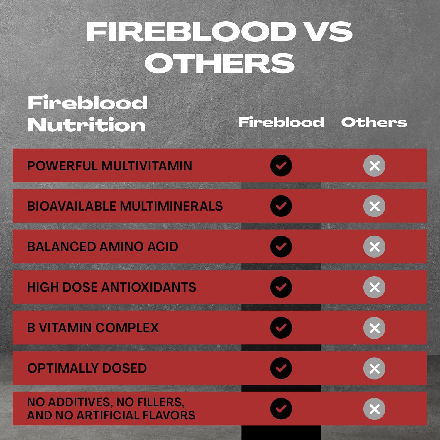 🔥 POWERFUL MULTIVITAMIN: Even with the best diet, some nutrients can be hard to get. FIREBLOOD delivers optimal amounts of nutrients in easily digested forms that help your body thrive in power for fitness.