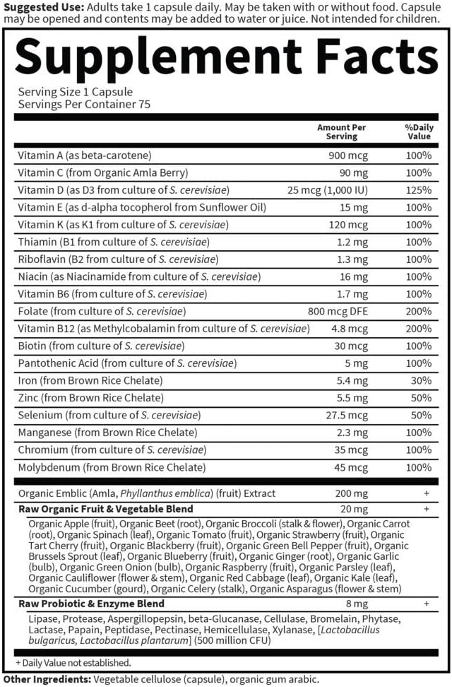 Garden of Life Vitamin Code Raw One for Women, Once Daily Women’s Multivitamin – 75 Capsules, One a Day Vitamins Whole Food Iron, Probiotics for Digestive Health, Gluten Free Vegetarian